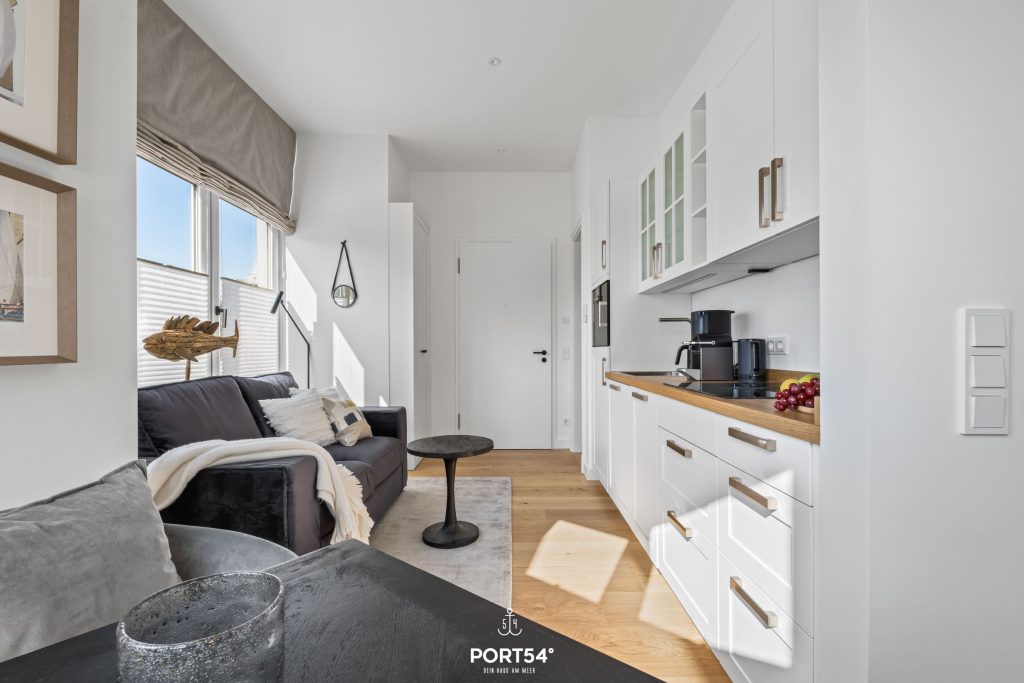 Mit einer Wohnfläche von 24 m² eignet sich die modern konzipierte Ferienwohnung ideal für bis zu zwei Personen. Die Wohnung befindet sich im Parterre und wurde im Jahr 2025 erbaut. Der geschmackvoll gestaltete Wohnbereich vereint eine gemütliche Sofaecke, einen Esstisch und eine offen zum Wohnzimmer gestaltete Einbauküche. Die komplette Küchenzeile ist hochwertig ausgestattet und verfügt über Induktionsherd, Backofen mit Elektroanschluss, Spülmaschine, Kühlschrank mit integriertem Gefrierfach, Kaffeemaschine, Espressomaschine, Wasserkocher, Toaster sowie alle notwendigen Küchenutensilien, Geschirr und Besteck. Darüber hinaus erleichtert dir ein Staubsauger den Alltag vor Ort.