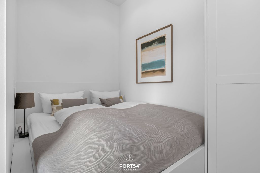 Der Schlafbereich ist mit komfortablen Schlafmöglichkeiten (für bis zu zwei Gäste) ausgestattet und verfügt – wie alle Fenster der Wohnung – über Sichtschutz. Im kombinierten Wohn- und Schlafbereich findest du einen modernen Fernseher, WLAN mit Highspeed-Internet (ab 100 Mbit/s, z.B. Kabel oder Glasfaser), ein Radio und gemütliche Sitzmöglichkeiten. Die Wohnräume sind mit angenehmer Fußbodenheizung versehen und sorgen so auch an kühleren Tagen für behaglichen Komfort.