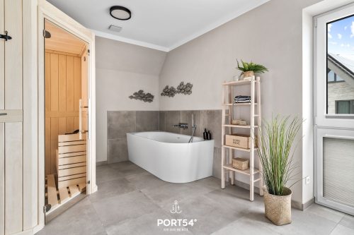 Das Tageslicht-Bad ist mit einer bodengleichen Dusche, Handtuchheizkörper und Haartrockner ausgestattet.
