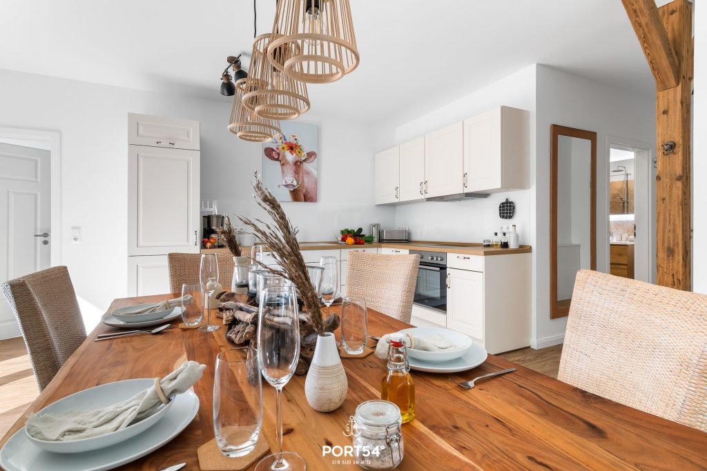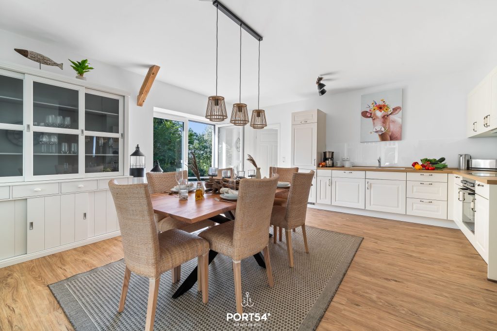 Der offene und hochwertige Wohn- und Essbereich mit voll ausgestatteter Küche und modernen Geräten lädt zum nächsten Kochabend ein.