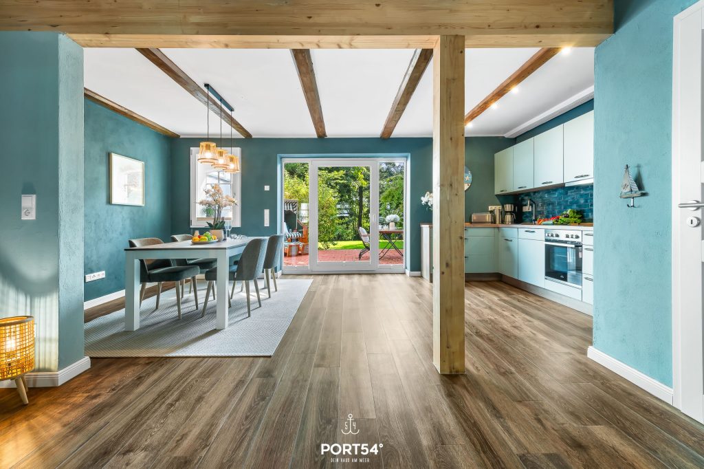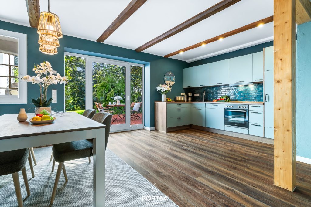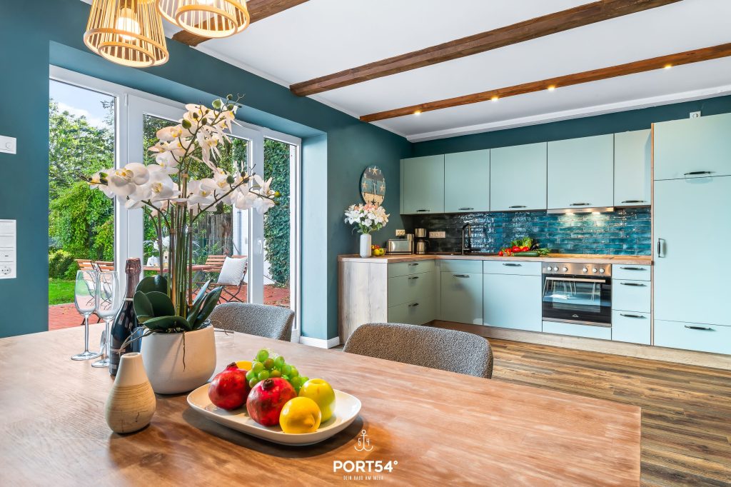 Der Wohn- und Essbereich mit einer voll ausgestatteten Küche lädt zum nächsten Kochabend mit der Familie ein.