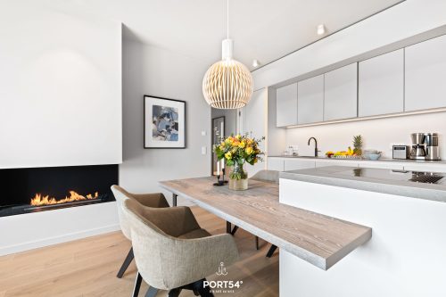 Der Wohn- und Essbereich ist das Herzstück und durch die anteilig bodentiefen Fenster zu jeder Tageszeit...