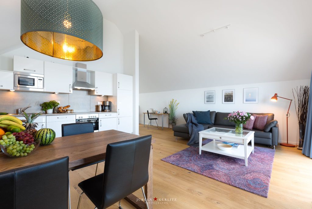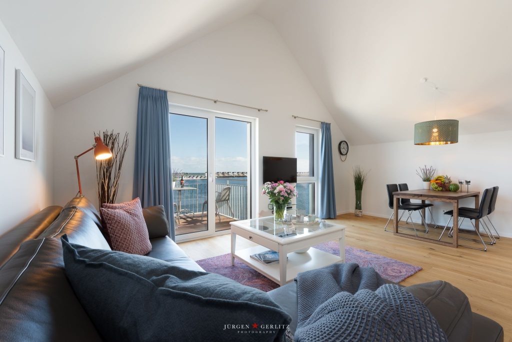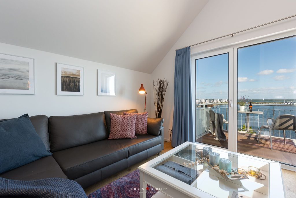 Willkommen in der exklusiven Ferienwohnung „Mehrblick“, wo Du nur wenige Meter vom Wasser entfernt auf 66 m² einen atemberaubenden Panoramablick auf den Hafen und die Schlei erleben kannst.