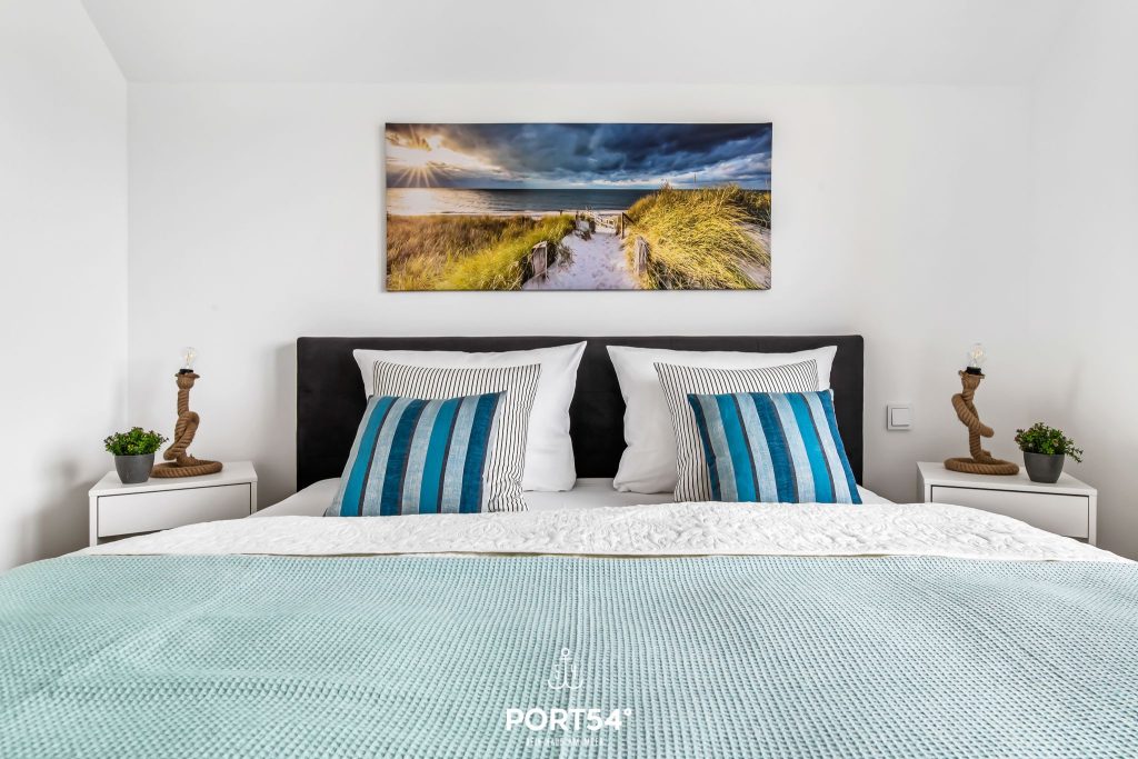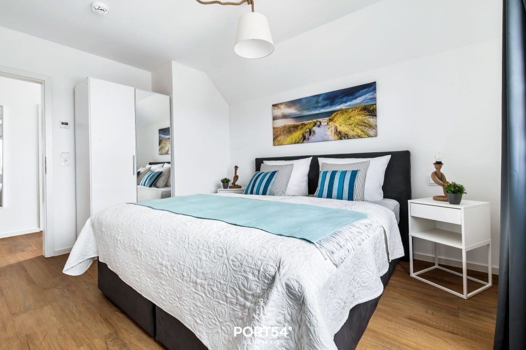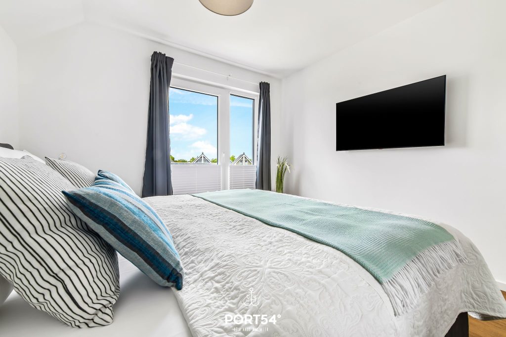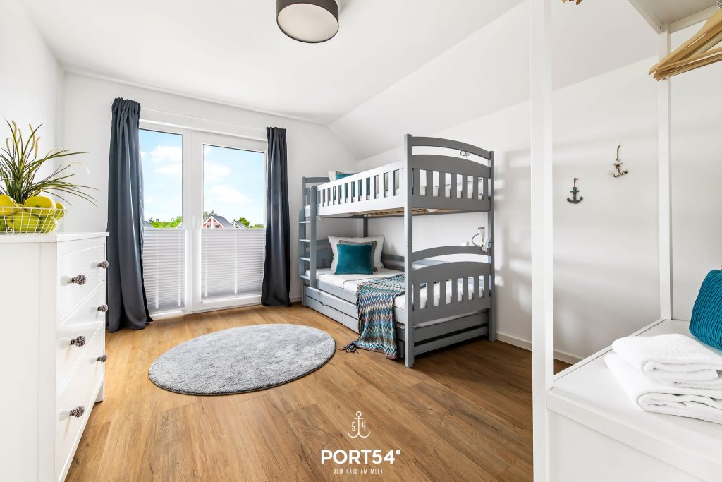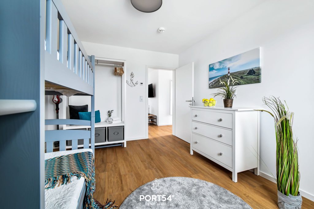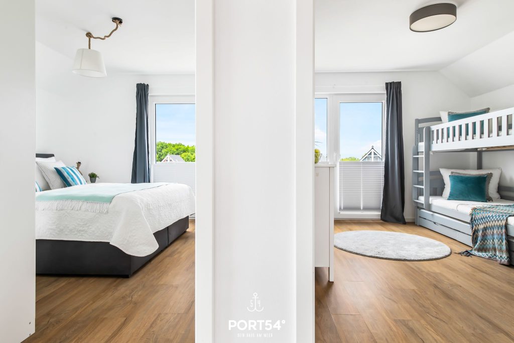 Die beiden Schlafzimmer bieten dir angenehme Rückzugsorte für erholsame Nächte. Eines der Schlafzimmer ist mit einem komfortablen Doppel-Boxspringbett (180 x 200 cm) und einem TV ausgestattet. Das zweite Schlafzimmer verfügt über ein Hochbett inklusive Ausziehbett und bietet damit bis zu drei Schlafplätze – ideal für Kinder, Jugendliche oder Freunde. Jedes Bett ist für ein Gewicht von bis zu 90 kg ausgelegt.