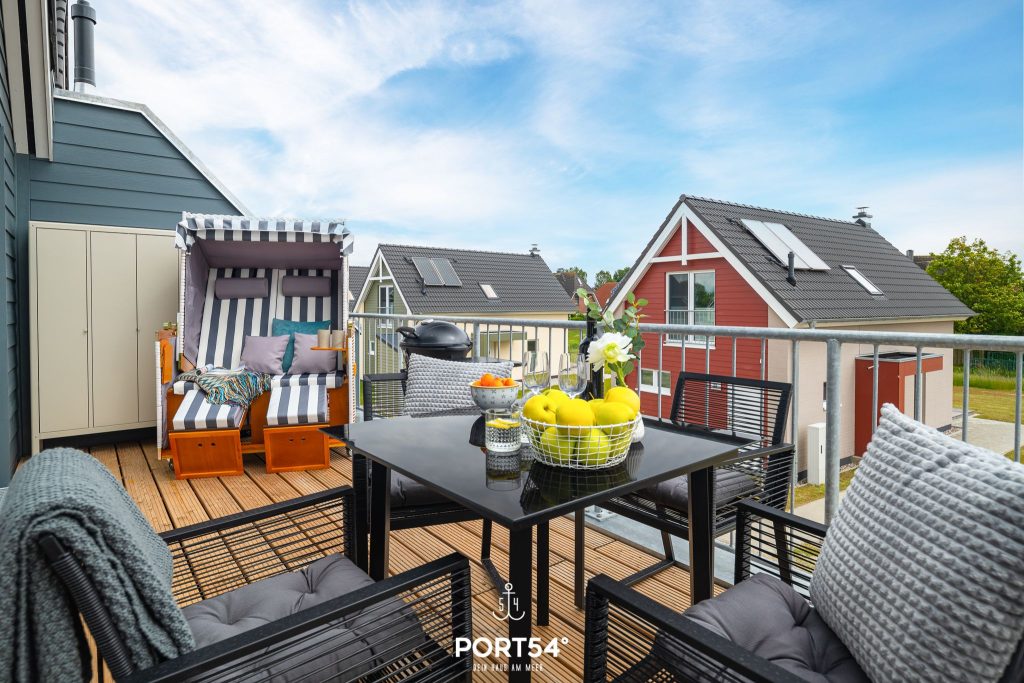 Auf dem großen Balkon kannst du die frische Nordseeluft genießen und den Tag entspannt ausklingen lassen. Ausgestattet mit Gartentisch, Stühlen und Elektrogrill ist er der ideale Ort für ein entspanntes Frühstück, sonnige Nachmittage oder gesellige Grillabende.