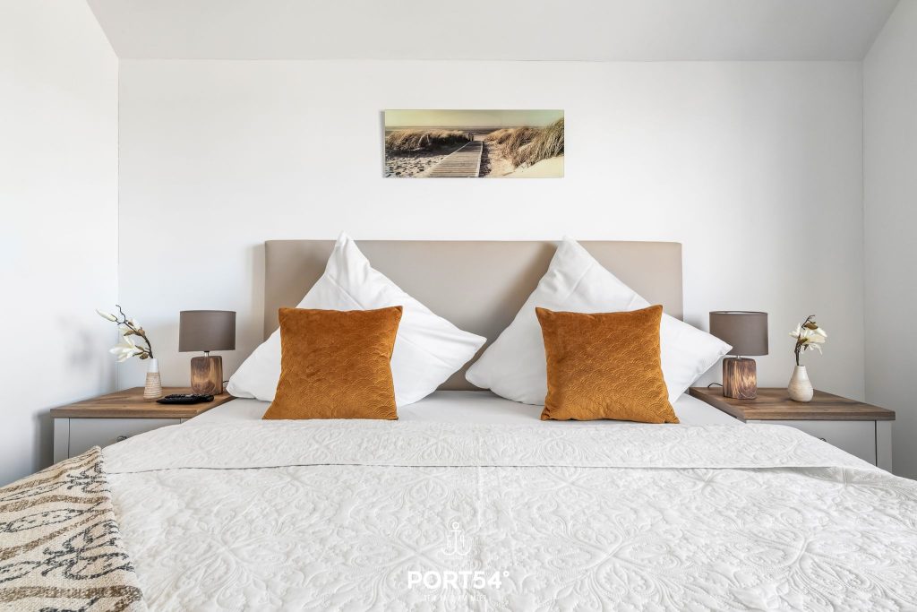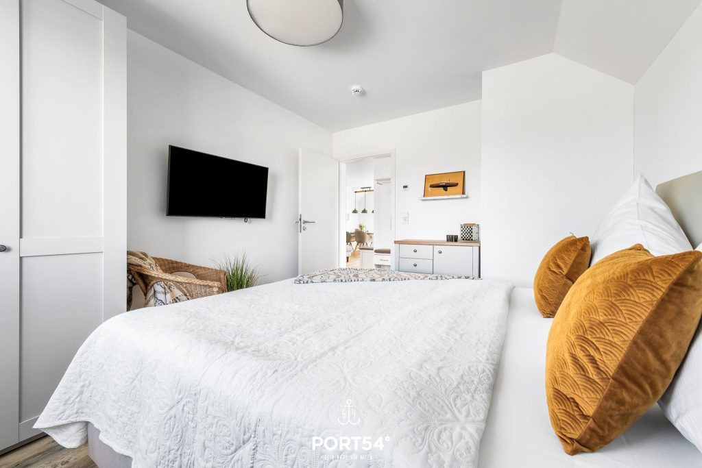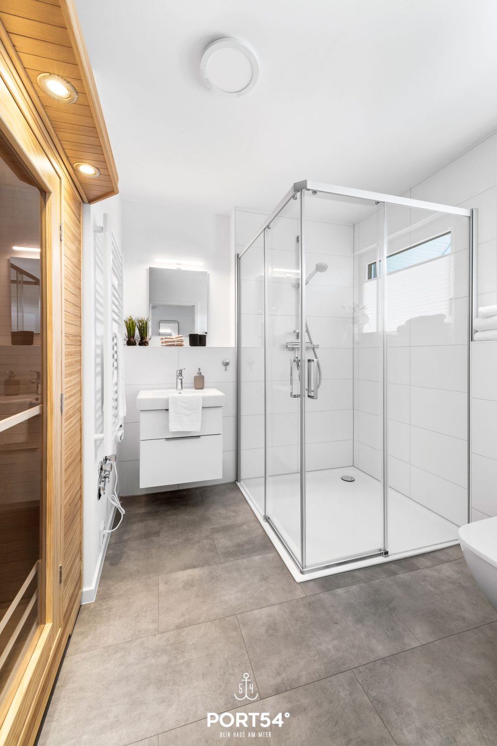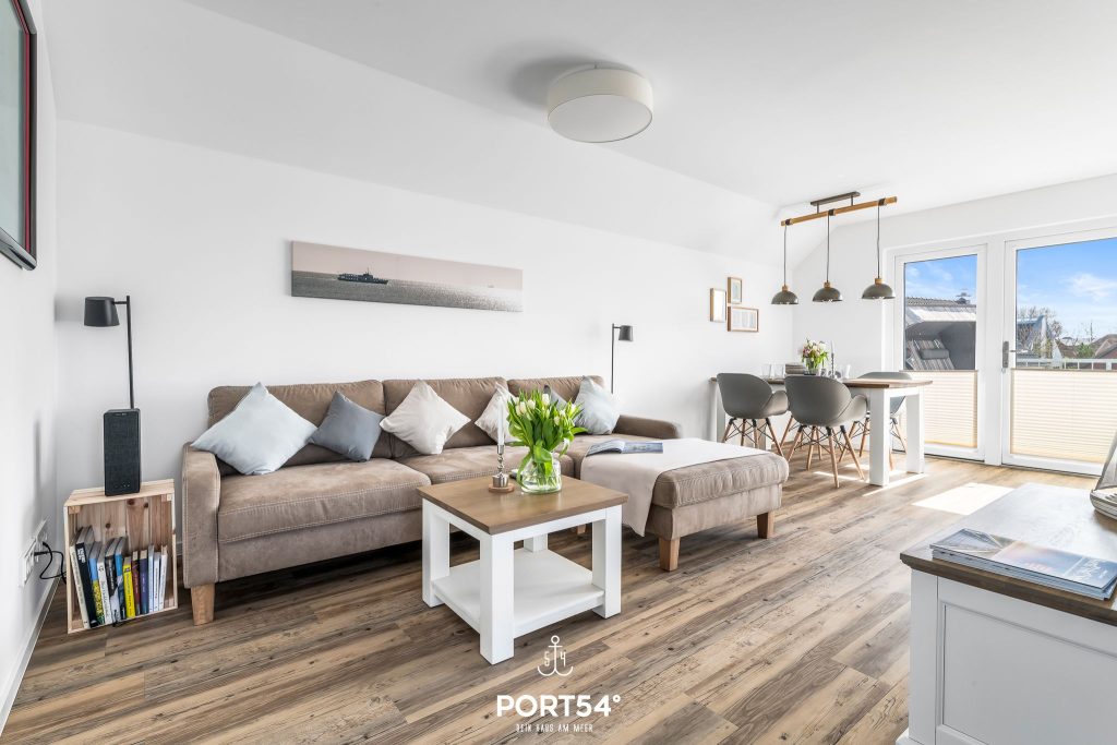 Das helle Wohnzimmer lädt mit seiner gemütlichen Couch dazu ein, es dir nach einem erlebnisreichen Tag so richtig bequem zu machen. Besonders in der kalten Jahreszeit entfaltet die Wohnung ihren ganz besonderen Charme: Dann sorgt der Kamin für wohlige Wärme und eine behagliche Atmosphäre, während du auf dem Flachbild-TV deine Lieblingsserie genießen kannst. Für zusätzliche Entspannung steht dir außerdem eine Infrarot-Sauna zur Verfügung – perfekt, um dich nach einem langen Strandspaziergang aufzuwärmen und die Seele baumeln zu lassen. So wird die Wohnung auch im Herbst und Winter zu einem wunderbaren Wohlfühlort.