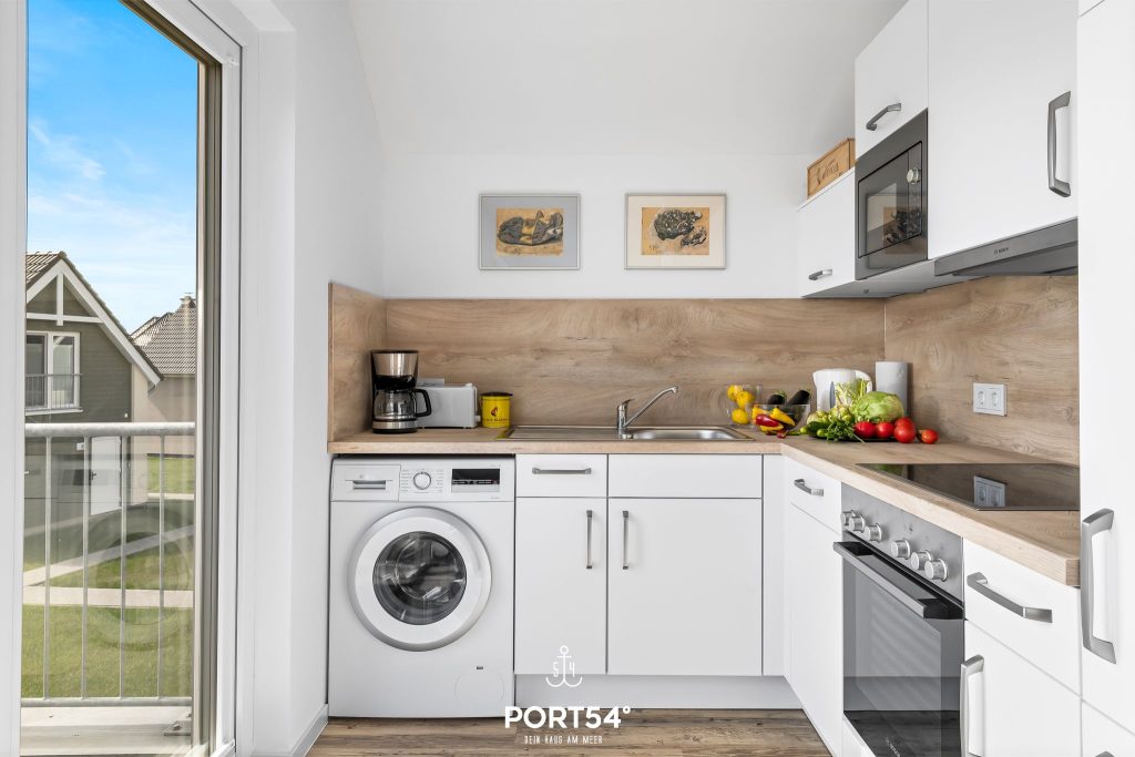 In der voll ausgestatteten Küche kannst du den Urlaub ganz entspannt genießen und gemeinsame Kochabende mit der Familie oder Freunden verbringen. Das moderne Badezimmer ist mit einer ebenerdigen Dusche, einem Handtuchtrockner und einem Föhn ausgestattet. Zusätzlich stehen dir eine Waschmaschine und ein Wäscheständer zur Verfügung, was besonders bei längeren Aufenthalten sehr praktisch ist.