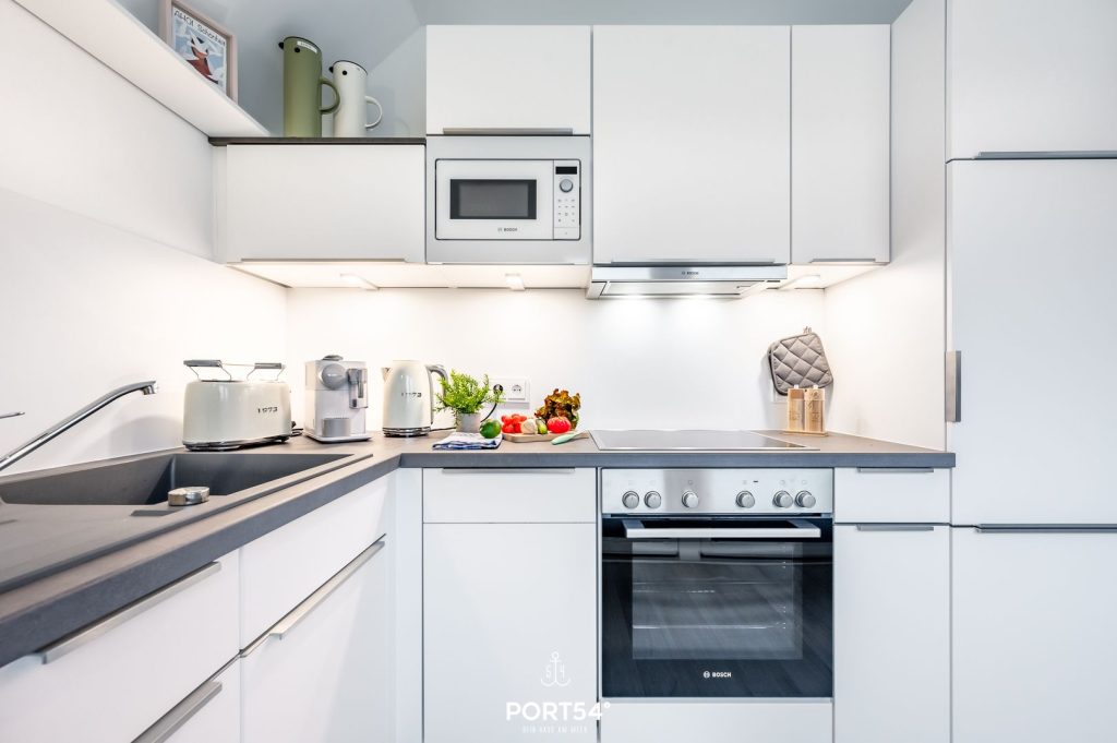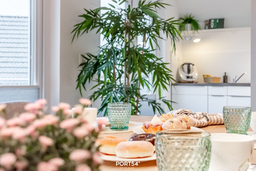 Die offene, moderne Küche ist voll ausgestattet und macht gemeinsame Kochmomente zum echten Urlaubserlebnis. Ob Frühstück mit frischem Kaffee aus der Nespresso-Maschine oder ein entspanntes Abendessen – hier kannst Du alles ganz nach Deinem Geschmack gestalten. Der angrenzende Essbereich lädt dazu ein, lange zu sitzen, zu lachen und gemeinsam Zeit zu genießen.