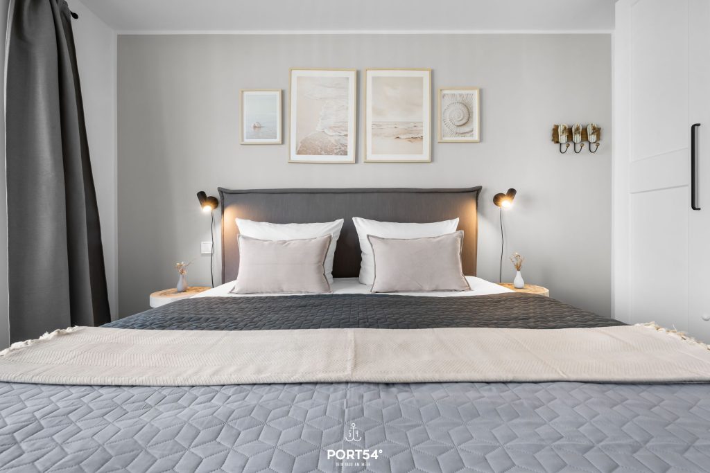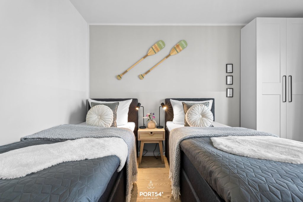 In den beiden liebevoll gestalteten Schlafzimmern findest Du Ruhe und Erholung. Ein komfortables Doppelbett (180x200 cm) sowie zwei flexible Einzelbetten (je 90x200 cm), die sich bei Bedarf zusammenschieben lassen, bieten Dir maximale Flexibilität – ideal für Paare, Familien oder Freunde.