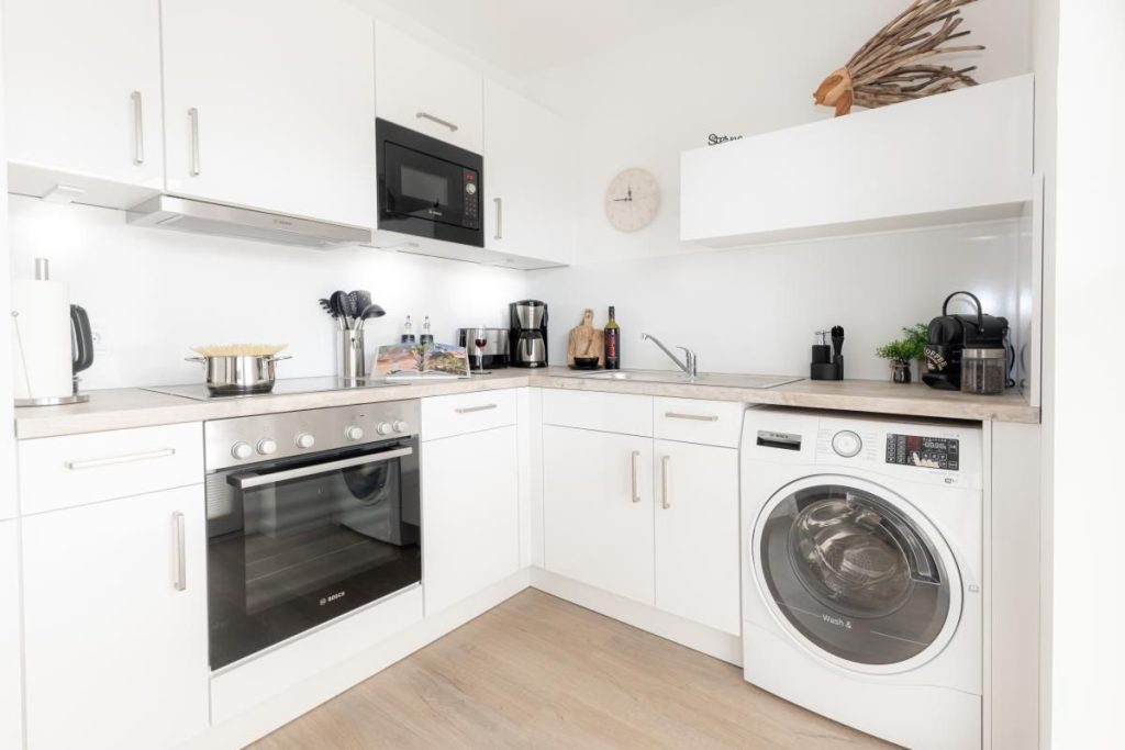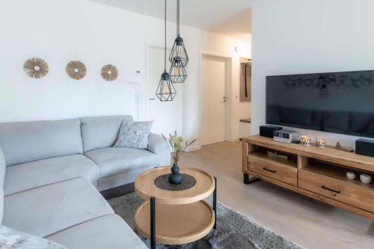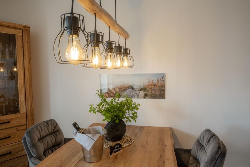 Der offene Wohn- und Essbereich bildet das Herzstück der Wohnung und lädt Dich zum Ankommen und Wohlfühlen ein. Mach es Dir auf dem gemütlichen Sofa bequem, genieße Deine Lieblingsserie auf dem Smart-TV mit Magenta TV oder verbringe gesellige Abende mit Deinen Liebsten. Der Kamin sorgt dabei für eine angenehm warme, heimelige Atmosphäre – perfekt für ruhige Stunden nach einem erlebnisreichen Tag an der frischen Nordseeluft.