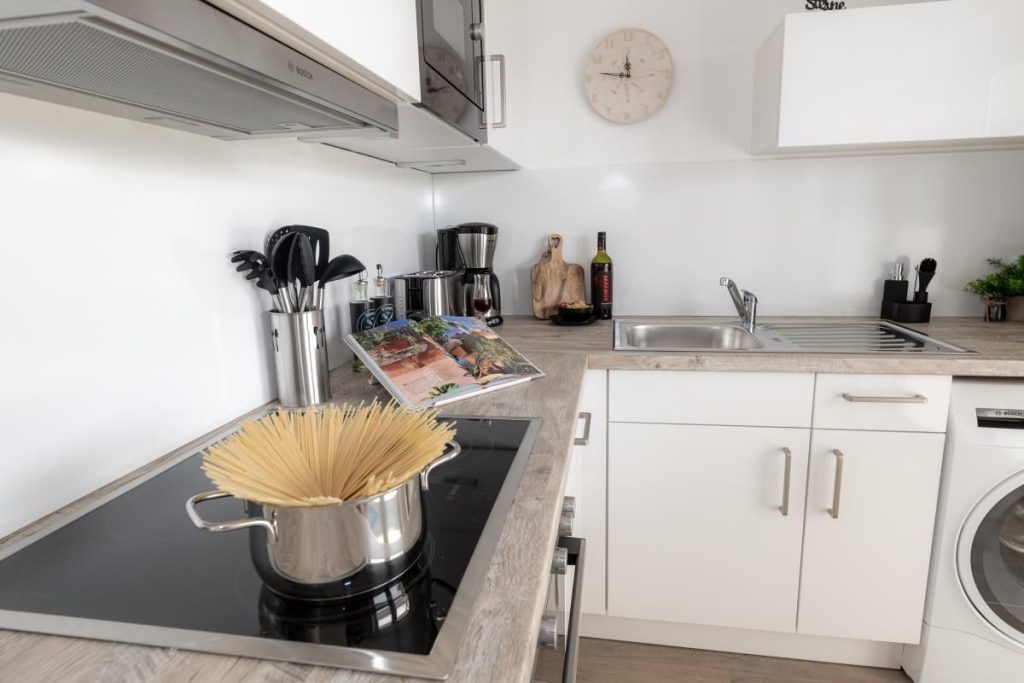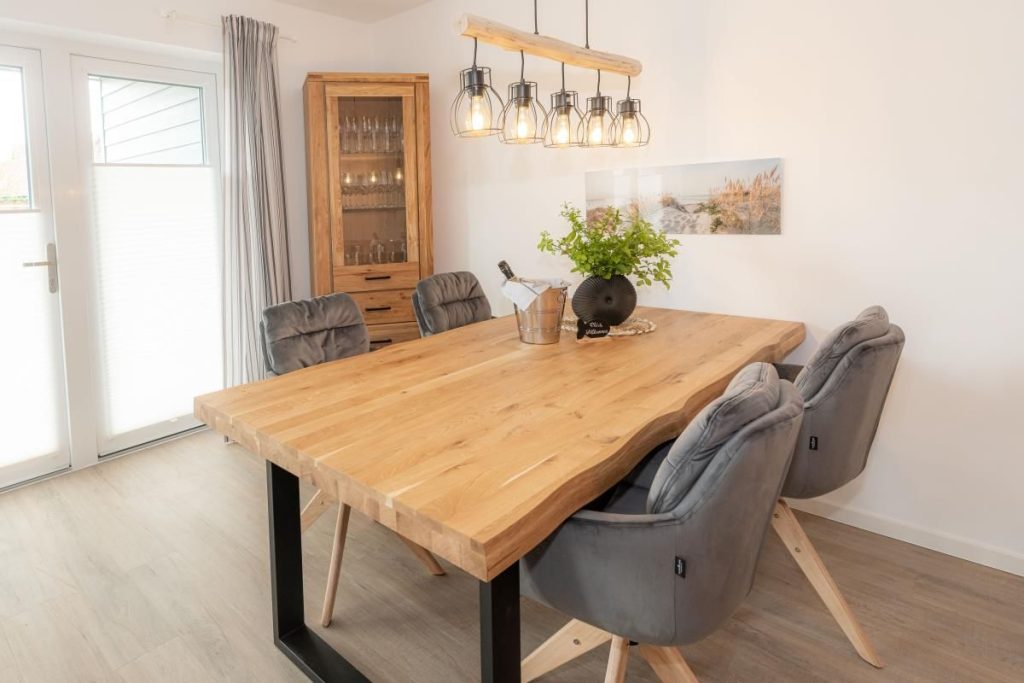 In der voll ausgestatteten Küche kannst Du Dich ganz nach Deinen Wünschen entfalten. Ob ein ausgiebiges Frühstück, ein frisch gebackener Kuchen oder ein leckeres Abendessen – dank umfangreichem Backzubehör und moderner Ausstattung steht Deinem kulinarischen Genuss nichts im Wege. Am Esstisch wird gemeinsam gelacht, gegessen und gespielt – hier entstehen die schönsten Urlaubserinnerungen.