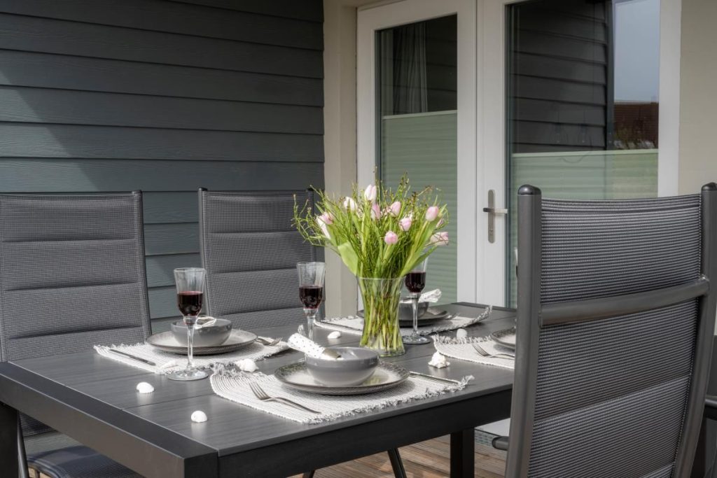 Vom Wohn- und Essbereich aus gelangst Du direkt auf die möblierte, überdachte Terrasse. Hier kannst Du Deinen Morgen mit einer Tasse Kaffee beginnen, die frische Nordseeluft genießen oder den Tag bei einem gemütlichen Grillabend ausklingen lassen. Die geschützte Lage macht die Terrasse zu einem idealen Ort für entspannte Stunden im Freien – ganz unabhängig vom Wetter.
