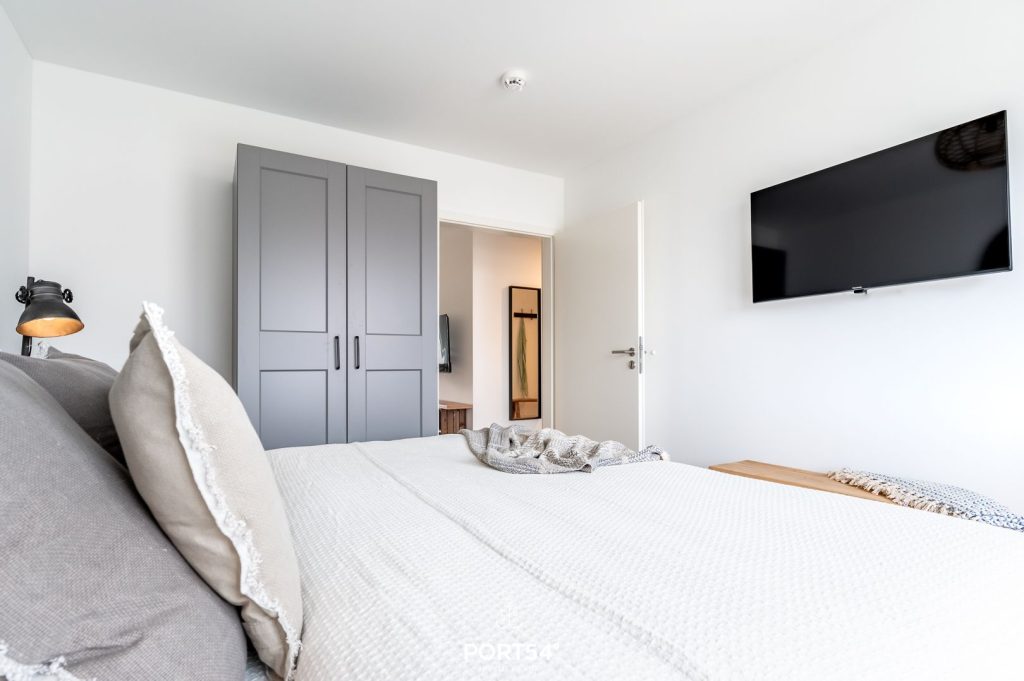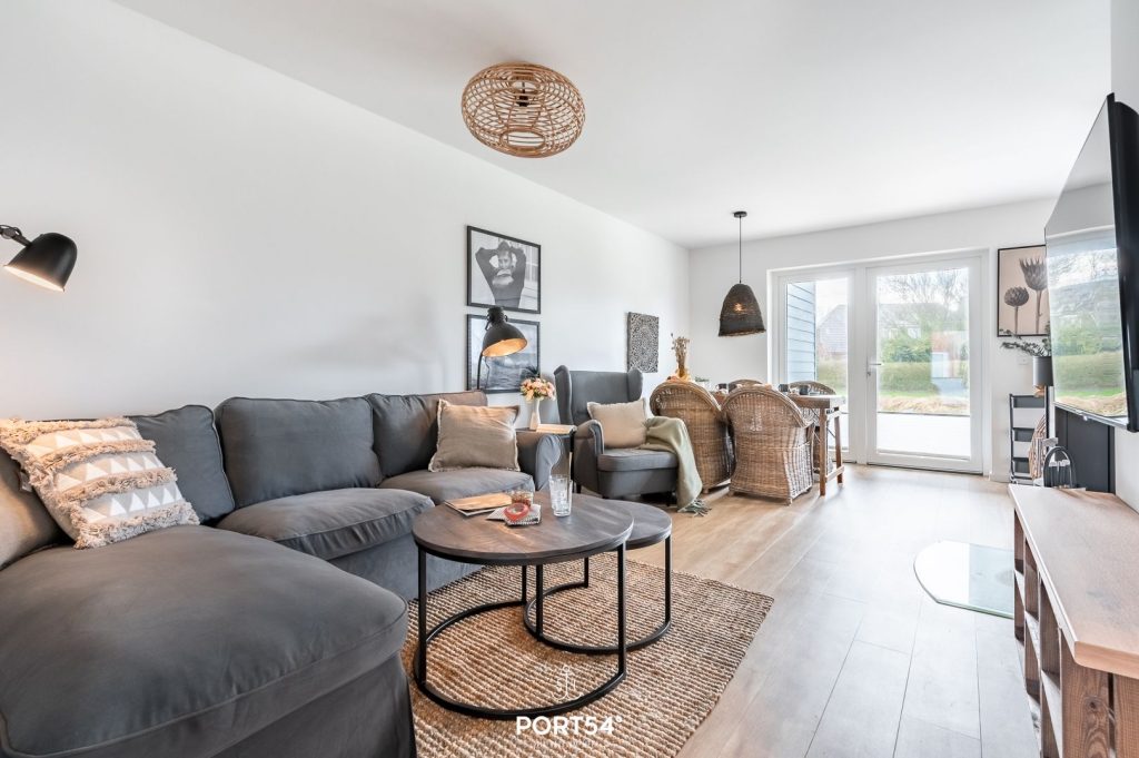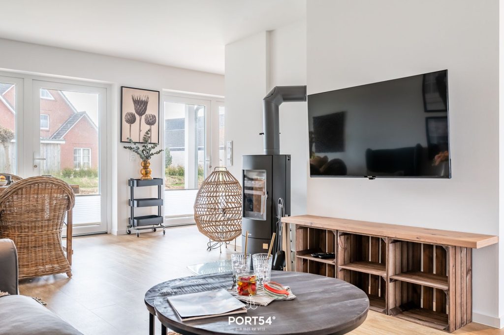 Die großzügige 80 m² große Wohnung befindet sich im 1. Obergeschoss einer modernen Ferienanlage und bietet Platz für bis zu 4 Personen. Dich erwarten zwei gemütliche Schlafzimmer, ein modernes Badezimmer mit Dusche sowie ein zusätzliches WC. Der helle Wohnbereich mit bequemer Sofaecke und Kaminofen lädt zu entspannten Abenden ein – besonders nach einem erlebnisreichen Tag an der frischen Nordseeluft.