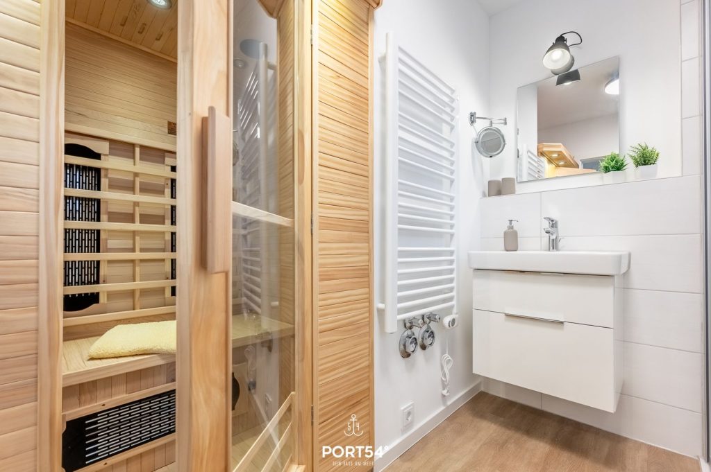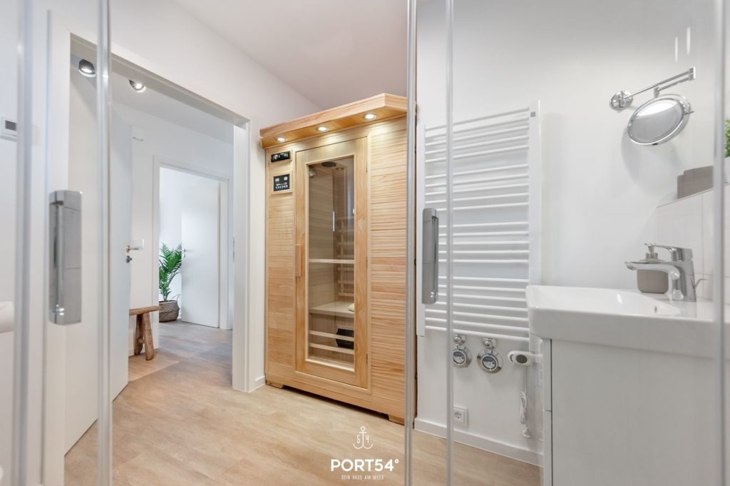 Ein echtes Highlight ist der private Wellnessbereich: Freu dich auf eine Infrarotkabine – perfekt, um nach einem Tag am Meer zu entspannen. Für zusätzlichen Komfort sorgen Waschmaschine, Bügeleisen, Staubsauger und weitere praktische Helfer.