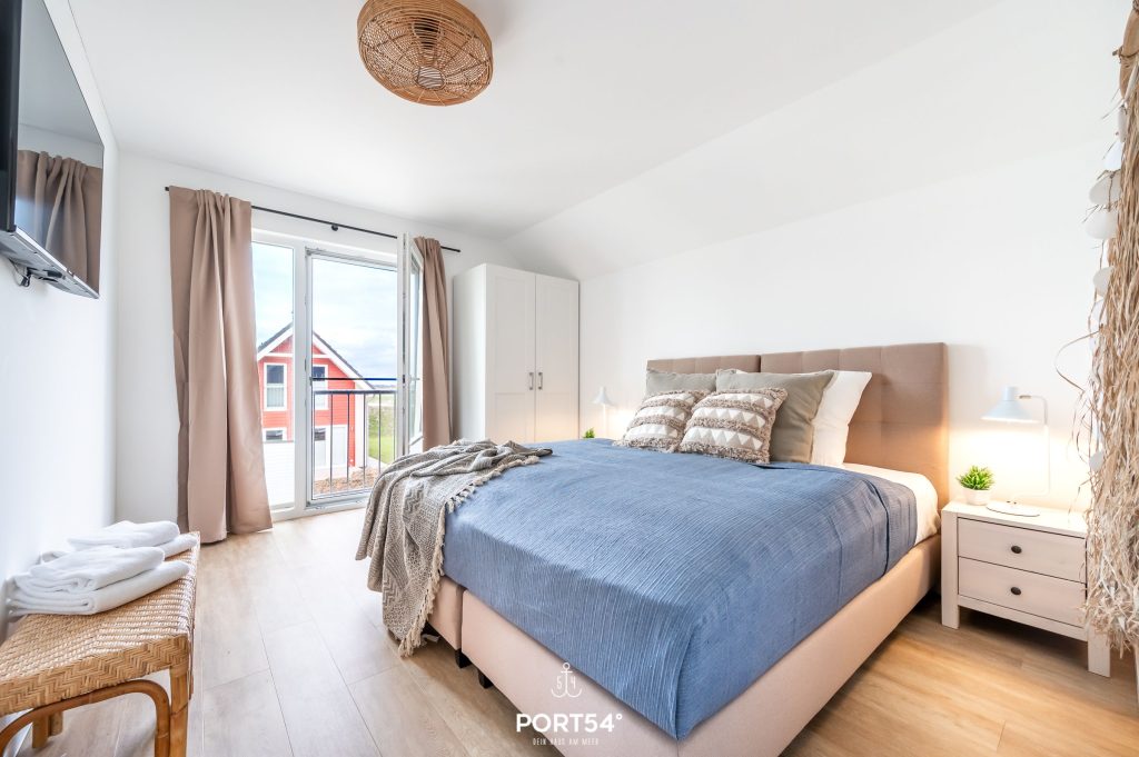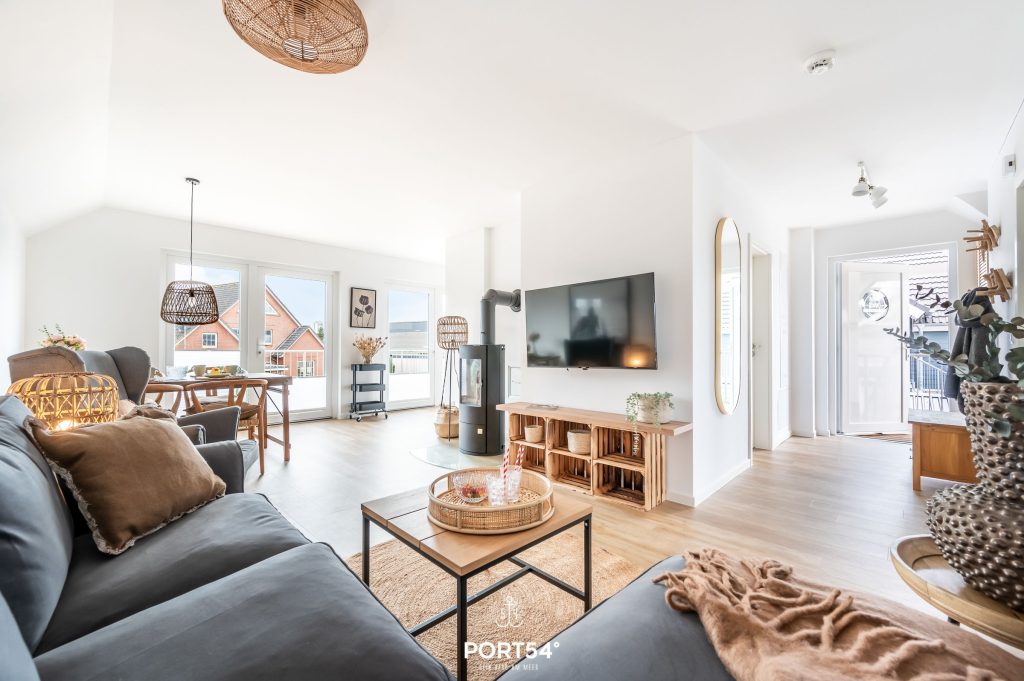 Die großzügige 80 m² große Wohnung befindet sich im 1. Obergeschoss einer modernen Ferienanlage und bietet Platz für bis zu 4 Personen. Dich erwarten zwei gemütliche Schlafzimmer, ein modernes Badezimmer mit Dusche sowie ein zusätzliches WC. Der helle Wohnbereich mit bequemer Sofaecke und Kaminofen lädt zu entspannten Abenden ein – besonders nach einem erlebnisreichen Tag an der frischen Nordseeluft.
