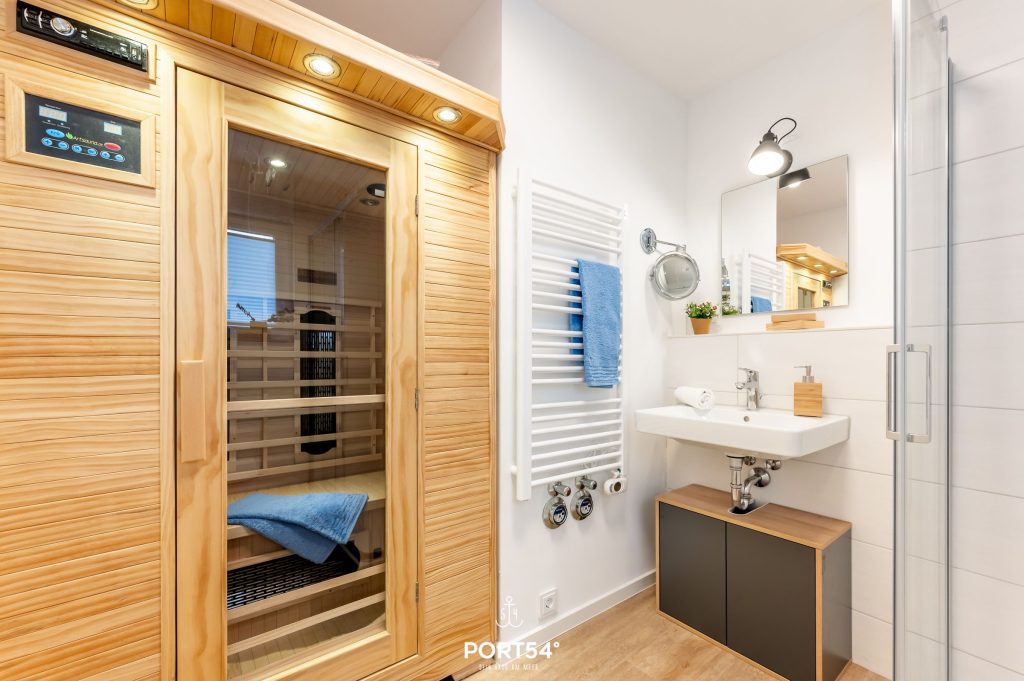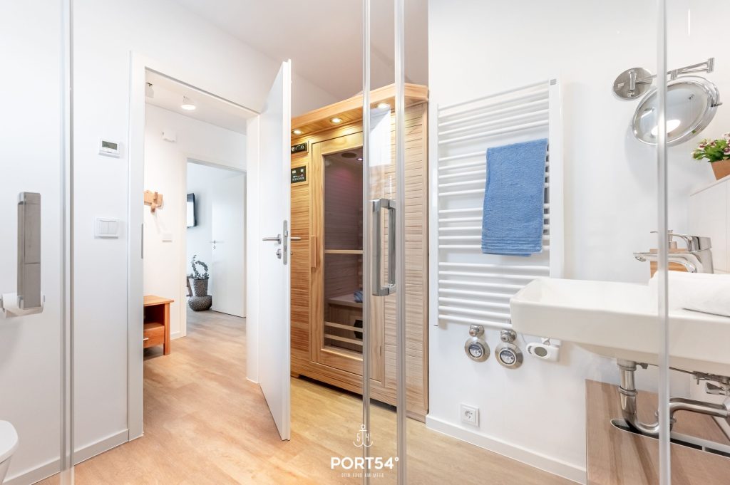 Ein echtes Highlight ist der private Wellnessbereich: Freu Dich auf eine Infrarotkabine – perfekt, um nach einem Tag am Meer zu entspannen. Für zusätzlichen Komfort sorgen Waschmaschine, Bügeleisen, Staubsauger und weitere praktische Helfer.