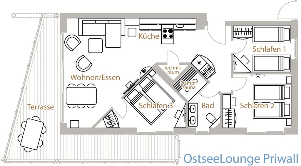 Die Ferienwohnung OstseeLounge Priwall Travemünde empfängt dich in exklusiver Lage direkt an der Ostsee in der renommierten Ferienanlage Priwall, nur 150 Meter vom Sandstrand entfernt. Mit 76 m² Wohnfläche bietet die 2018 erbaute Unterkunft auf einer Ebene ausreichend Platz und Komfort für bis zu sechs Personen. Sie ist ideal für Familien, Paare oder kleine Gruppen...