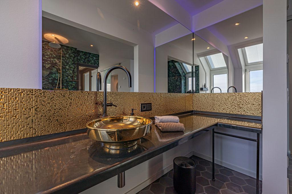 Im Tageslicht-Bad erwarten Dich eine bodengleiche Dusche, ein Föhn sowie ein Kosmetikspiegel, das WC ist in einem separaten Raum, vom Badezimmer abgehend, vorhanden.