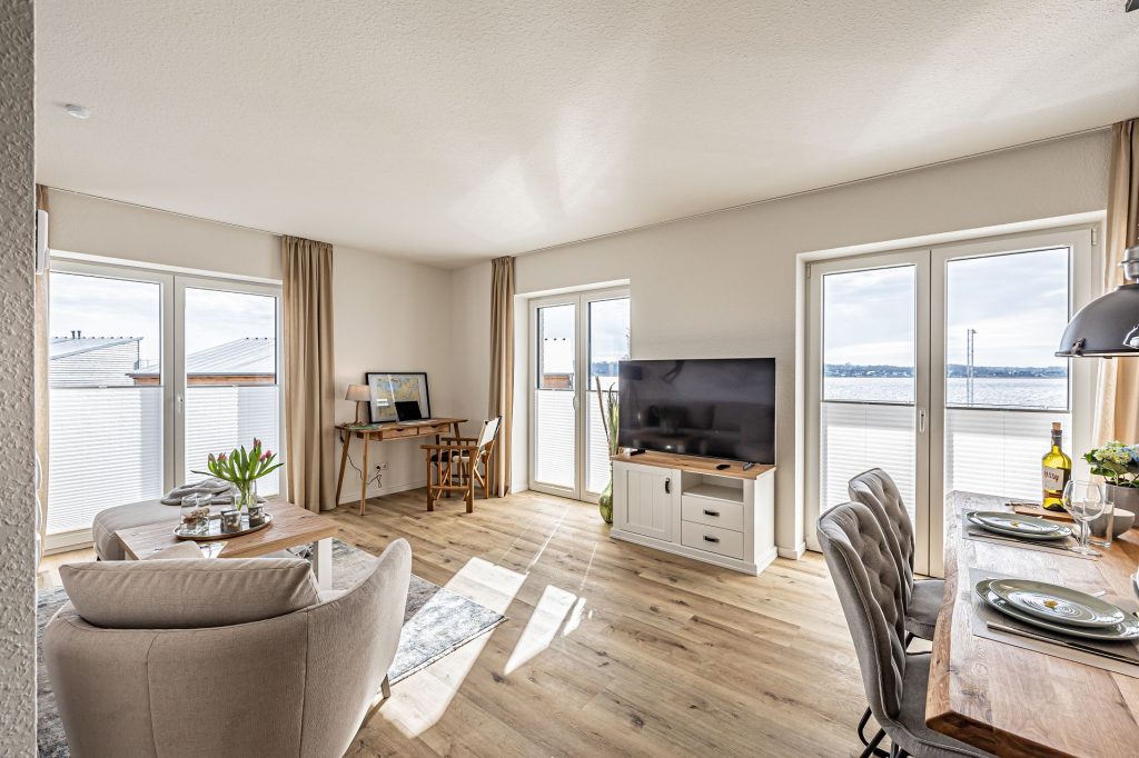 Mit direktem Wasserblick und in einzigartiger Lage direkt an der Schlei bietet Dir die „Schlei-Koje 3“ am Pionierhafen Schleswig den perfekten Ort für Deinen Urlaub. Die Ferienwohnung im 1. OG bietet Dir auf ca. 71 m² einen offenen Wohn- und Essbereich mit Küche, zwei Schlafzimmer, ein Badezimmer und einen Balkon.
