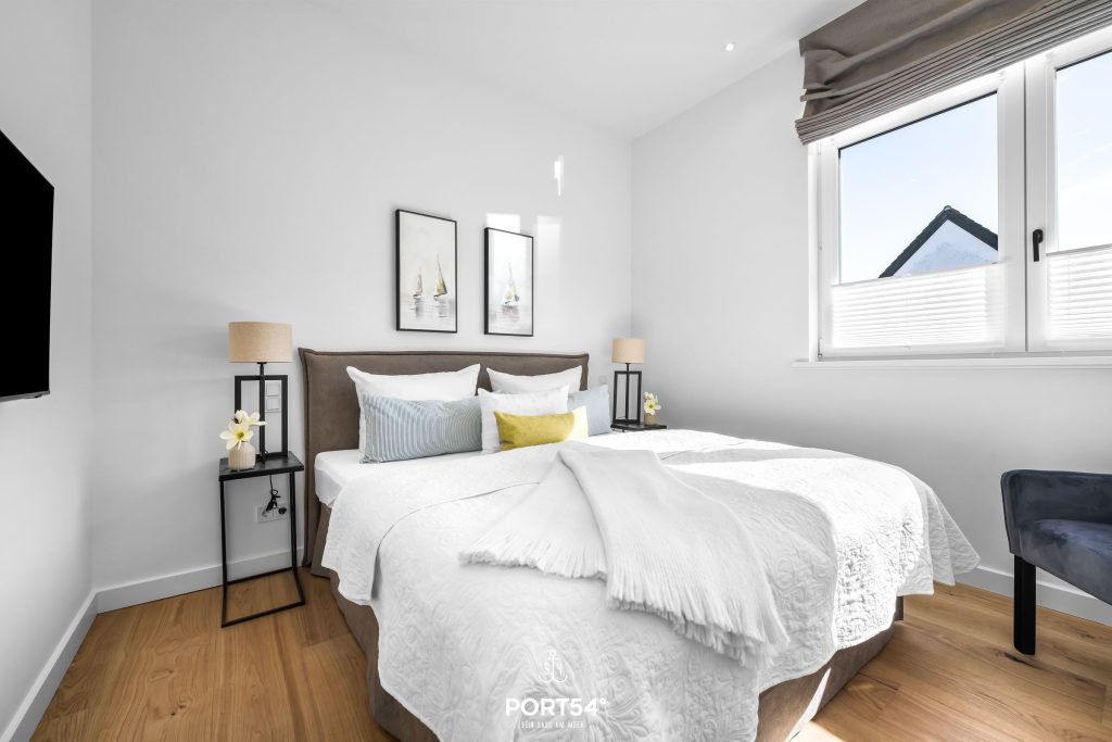 Mit einer großzügigen Grundfläche von 37 m² bietet die Ferienwohnung im Erdgeschoss ausreichend Platz für bis zu drei Personen. Die lichtdurchfluteten Räume sind geschmackvoll eingerichtet, und die offene Küche, die zum Wohnzimmer hin gestaltet ist, lädt dazu ein, kulinarische Köstlichkeiten zuzubereiten. Hier findest du alle notwendigen Geräte wie einen Elektro-Herd mit Induktionskochfeld, einen Backofen, eine Spülmaschine, einen Kühlschrank mit Gefrierfach und vieles mehr. Das Schlafzimmer ist mit einem gemütlichen Doppelbett, Verdunkelungsmöglichkeiten und einem Smart TV ausgestattet. Das Sofa im Wohnbereich lässt sich zudem als Schlafsofa (160x200 cm) nutzen und bietet zusätzlichen Schlafplatz.