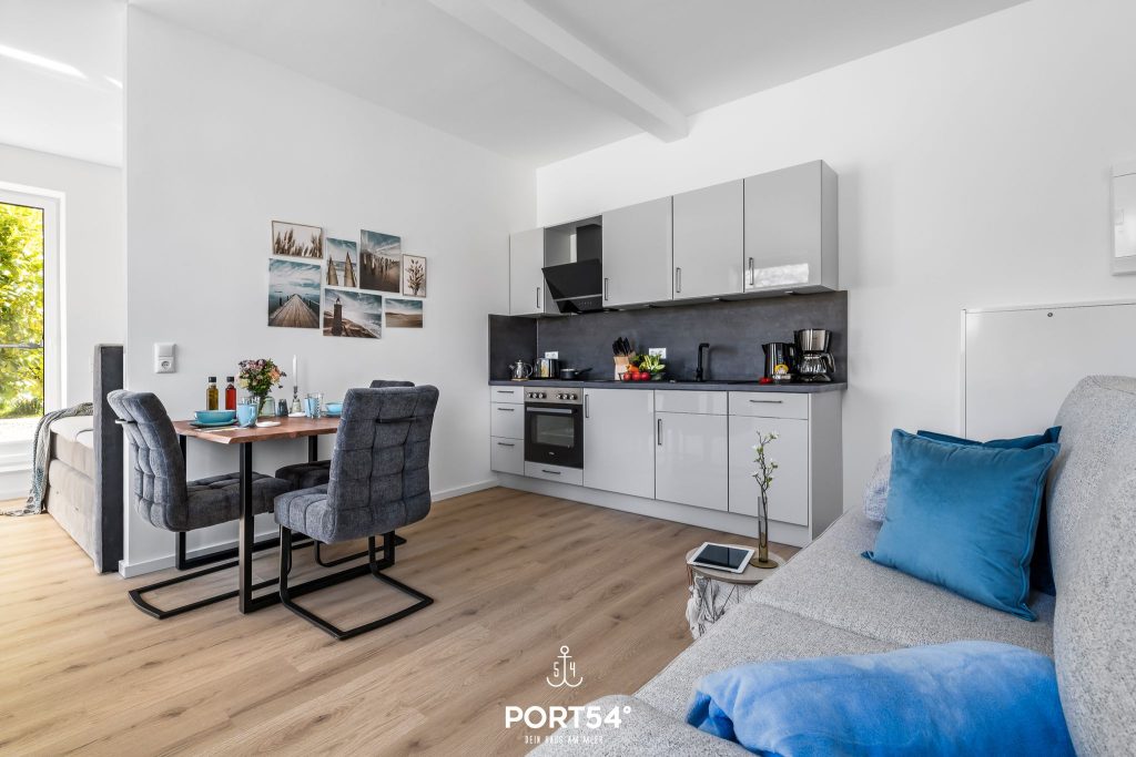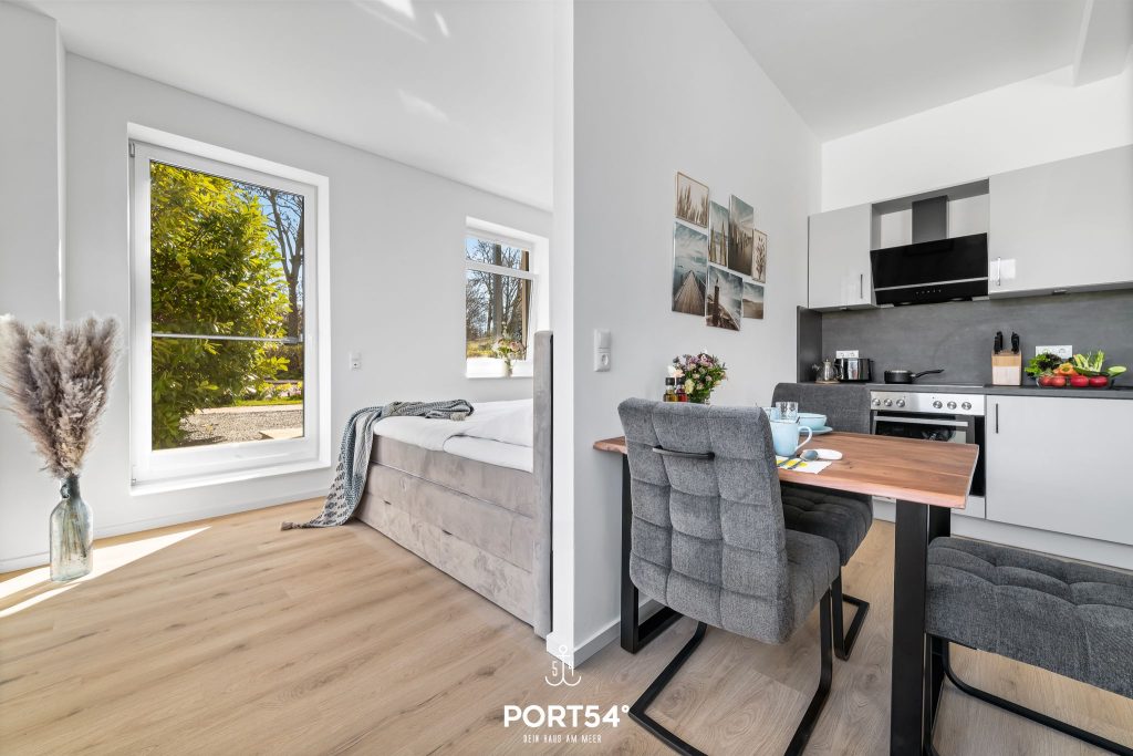 Im Osten der Halbinsel Angeln, unweit der Ostsee gelegen, bietet Dir die kernsanierte Ferienwohnung „Strandgut“ auf 37 m² einen offenen Wohnbereich mit integrierter Küchenzeile, ein offen gestaltetes Schlafzimmer und ein Badezimmer.