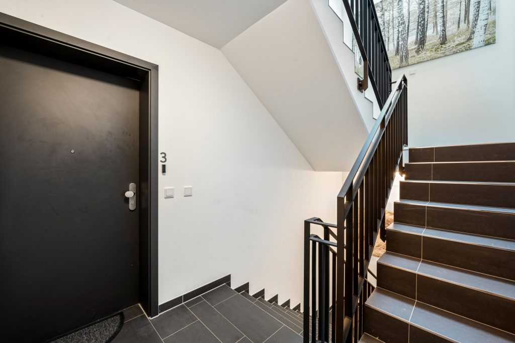 - die Wohnung liegt links im Obergeschoss