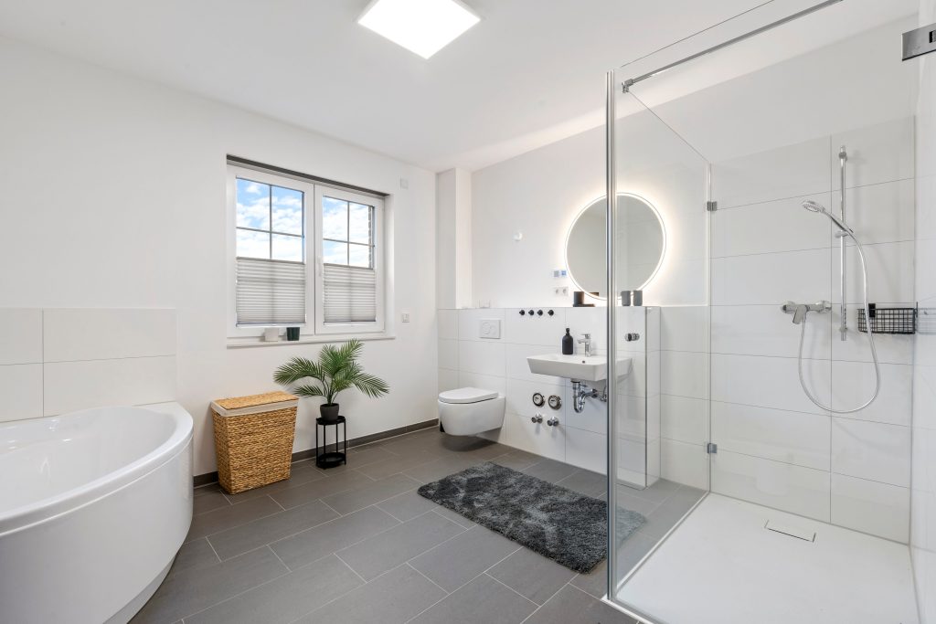 - modernes Badezimmer mit separater Dusche und Badewanne