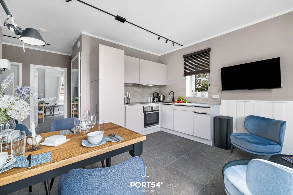 Die Nichtraucher-Ferienwohnung verfügt über 2 Zimmer, darunter 1 Schlafzimmer, 1 Badezimmer sowie ein Wohnzimmer mit gemütlicher Sofaecke. Die offene Küche ist harmonisch in den Wohnbereich integriert und bietet dir eine praktische Ausstattung mit Cerankochfeld, Backofen, Kühlschrank mit Gefrierfach, Spülmaschine, Kaffeemaschine, Wasserkocher, Toaster sowie Küchenutensilien, Geschirr und Besteck. Eine Erstausstattung und Bettwäsche sind ebenfalls vorhanden, sodass du deinen Aufenthalt unkompliziert beginnen kannst.