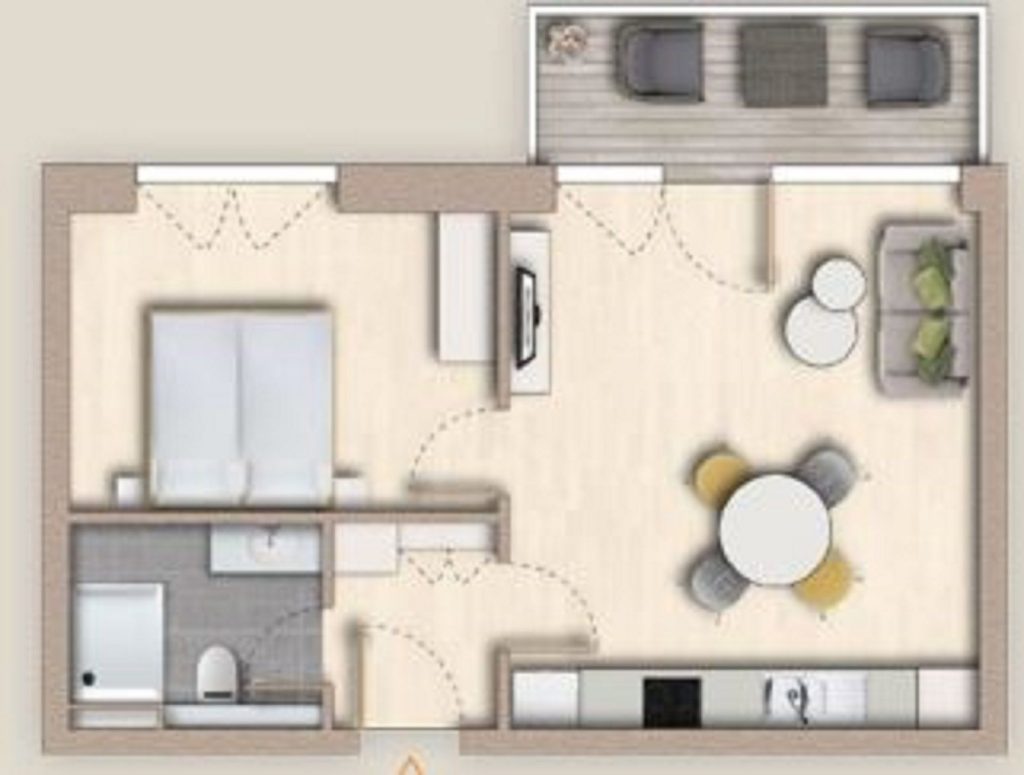 Ein besonderes Highlight ist der private Balkon mit Gartenmöbeln. Von hier aus genießt du einen direkten Blick auf die...