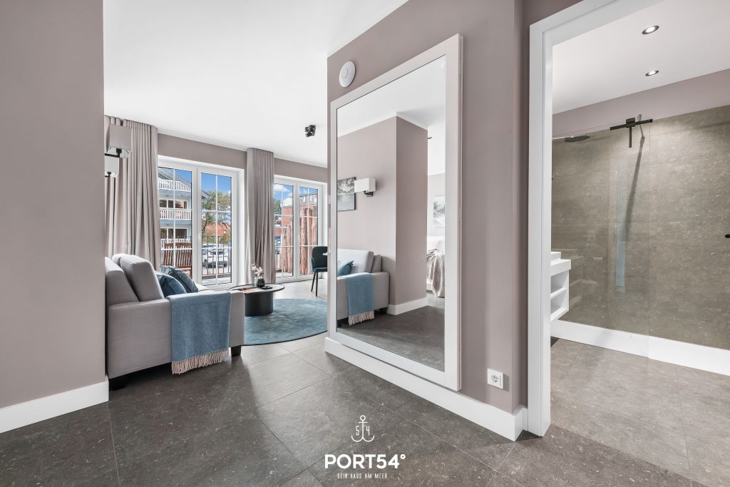 Port 54, die Ferienwohnungsagentur, befindet sich in derselben Anlage und steht dir jederzeit zur Verfügung. Nach einem erlebnisreichen Urlaubstag lädt im Erdgeschoss der Anlage der gemeinschaftliche Saunabereich mit Ruheraum zum Entspannen ein – ein wunderbarer Ort, um den Tag ruhig ausklingen zu lassen.