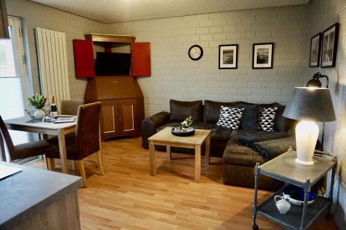 Im Wohnzimmer laden Sofaecke, Sofa, Sessel und TV zum Verweilen ein. Insgesamt stehen dir 2 Fernseher (44–55 Zoll) zur Verfügung. WLAN mit einer Internetgeschwindigkeit ab 100 Mbit/s ermöglicht dir komfortables Streaming oder Arbeiten. Fußbodenheizung, Heizung und Sichtschutz an allen Fenstern sorgen zu jeder Jahreszeit für angenehmen Wohnkomfort.