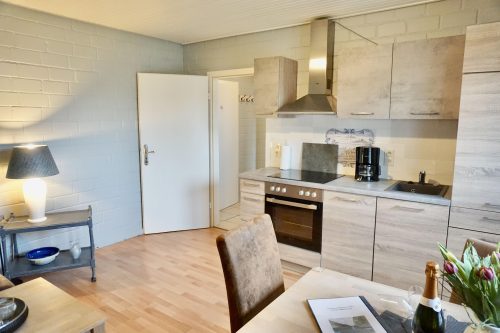 Die Wohnung verfügt über 3 Zimmer, darunter 2 Schlafzimmer und 2 Badezimmer, und eignet sich damit sehr gut für Familien, Paare oder einen komfortablen Aufenthalt zu viert. Kinder und Babys sind willkommen; ein Kinderhochstuhl sowie ein Babybett sind vorhanden. Jugendgruppen sind nicht erlaubt. Die offene Küche ist komplett ausgestattet: Cerankochfeld, Backofen, Mikrowelle, Kühlschrank mit Gefrierfach, Spülmaschine, Kaffeemaschine, Wasserkocher, Toaster, Mixer sowie Geschirr, Besteck und Küchenutensilien. Der Essbereich schließt direkt an den Wohnbereich an und schafft ein angenehmes Raumgefühl.