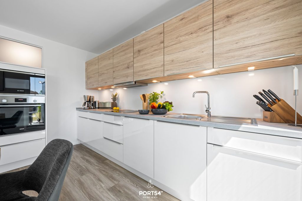 Die voll ausgestattete Küche lässt gemütliche gemeinsame Kochabende im Urlaub zu einem echten Erlebnis werden. Hier steht Dir unter anderem ein Raclettegrill zur Verfügung. In einem der beiden Schlafzimmer findest Du ein Doppelbett (180×200 cm) sowie einen TV, im anderen stehen Dir zwei Einzelbetten (100×200 cm) und ebenfalls ein TV zur Verfügung. Beide Schlafzimmer bieten Dir für eine erholsame Nachtruhe Verdunkelungsmöglichkeiten und jeweils einen Kleiderschrank.