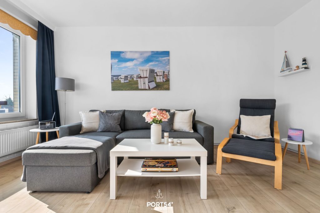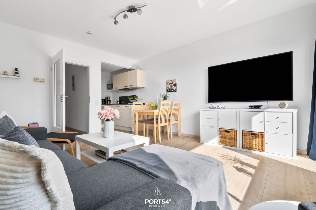 Die Ferienwohnung Wattkieker in Büsum, Erlengrund 112, bietet Ihnen den idealen Ort für einen erholsamen und komfortablen Aufenthalt an der Nordsee. In ruhiger Lage gelegen, überzeugt die moderne Wohnung mit einer durchdachten Ausstattung und einem einladenden Ambiente. Das helle Wohnzimmer mit offener Küche und Essecke lädt zum Verweilen ein. Die gut ausgestattete Küche bietet alles, was Sie für die Zubereitung von Mahlzeiten benötigen, darunter ein Herd, ein Kühlschrank, eine Mikrowelle und eine Spülmaschine. Direkt daneben befindet sich die Essecke, die genügend Platz für gesellige Stunden bietet. Im Wohnzimmer sorgt ein gemütliches Sofa mit Flachbild-TV für Entspannung nach einem ereignisreichen Tag.