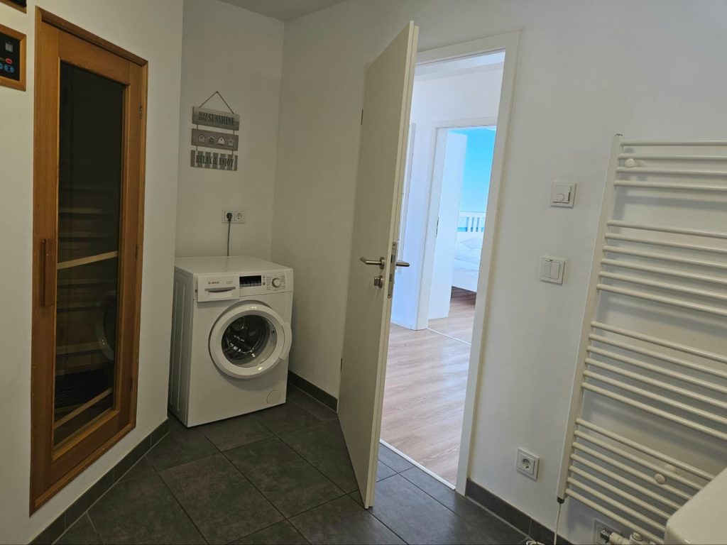 Eine eigene Waschmaschine und ein Bügeleisen stehen ebenfalls bereit, sodass längere Aufenthalte komfortabel möglich sind.
