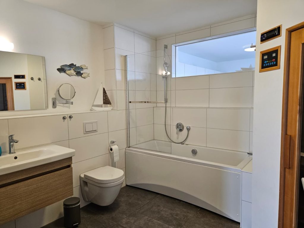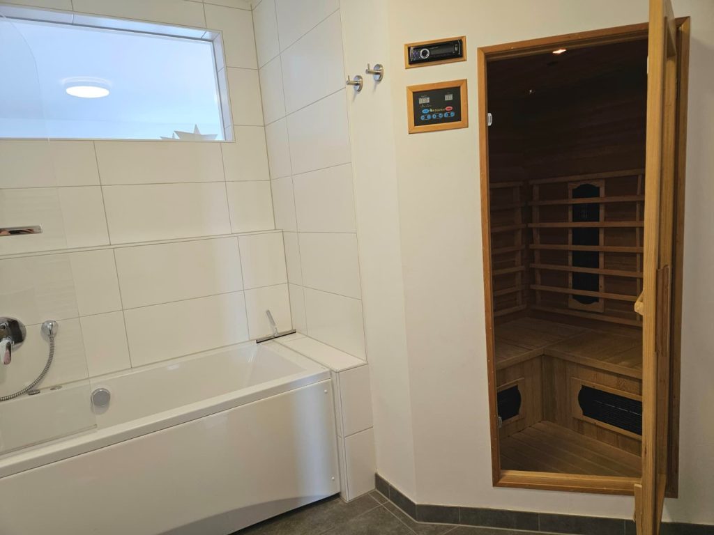 Im modernen Badezimmer steht dir eine komfortable Whirlwanne, die mit einer Dusche kombiniert ist, zur Verfügung. Für Dein Wohlbefinden sorgt zudem eine Infrarotkabine, die exklusiv von Dir genutzt werden kann. Dies schafft die optimale Grundlage für erholsame Wellnesstage, selbst bei kühleren Temperaturen.