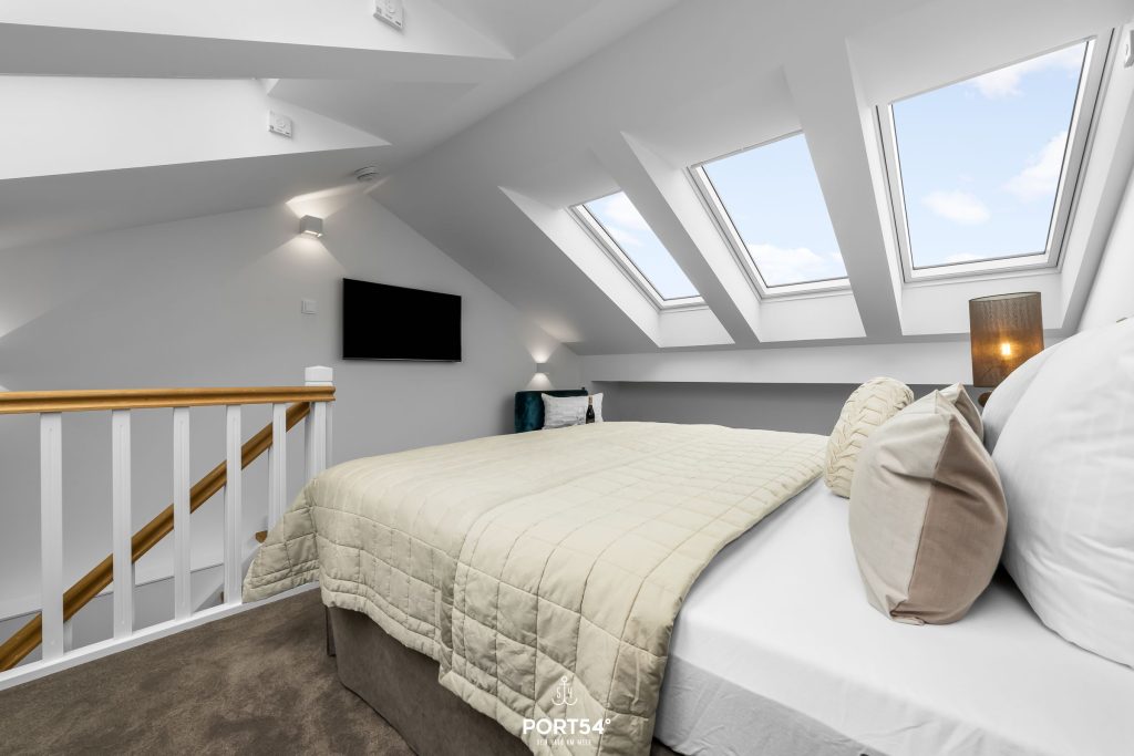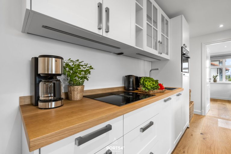 Auf 72 m² Wohnfläche im 1. Obergeschoss erwartet dich moderner Komfort für bis zu vier Personen. Die offene Wohnküche ist hochwertig ausgestattet – mit Induktionskochfeld, Backofen, Spülmaschine, Kühlschrank mit Gefrierfach u. v. m. Zwei gemütliche Schlafzimmer (eines im Obergeschoss, eines im Dachgeschoss) bieten erholsame Nächte dank Verdunkelungsmöglichkeiten und bequemen Doppelbetten (beide 180x200 cm).