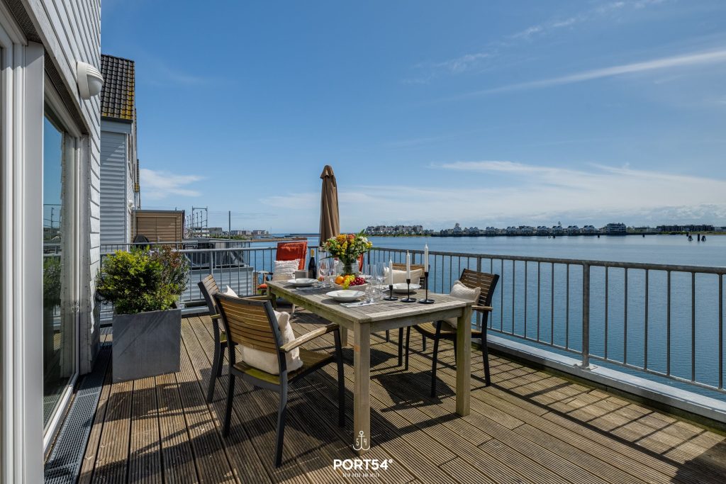 Von der Terrasse aus genießt Du nicht nur den Blick auf das Wasser, sondern profitierst auch von einem eigenen Strandkorb, Sonnenliegen, einem Sonnenschirm sowie einem Elektrogrill – ideale Voraussetzungen für erholsame Stunden im Freien.