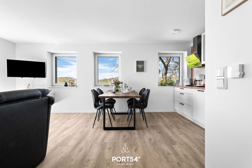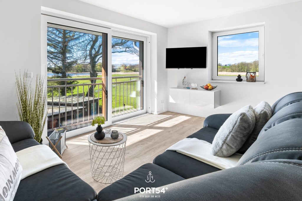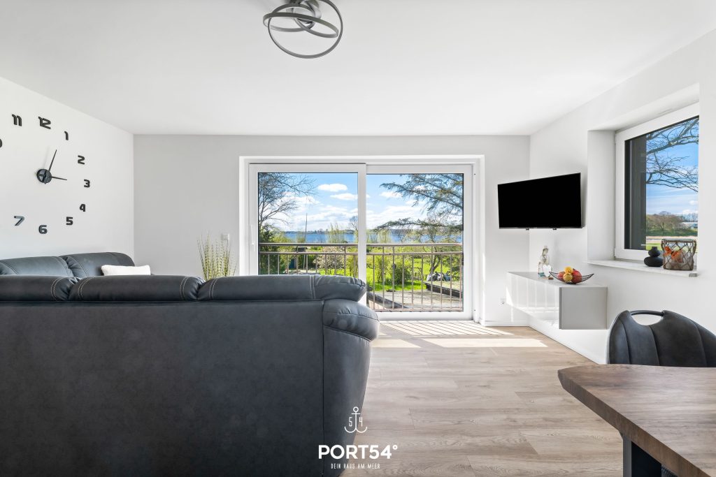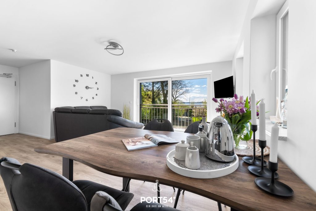 Der großzügige Wohn- und Essbereich besticht mit bodentiefen Fenstern, die Dir einen hervorragenden Blick auf die Schlei...