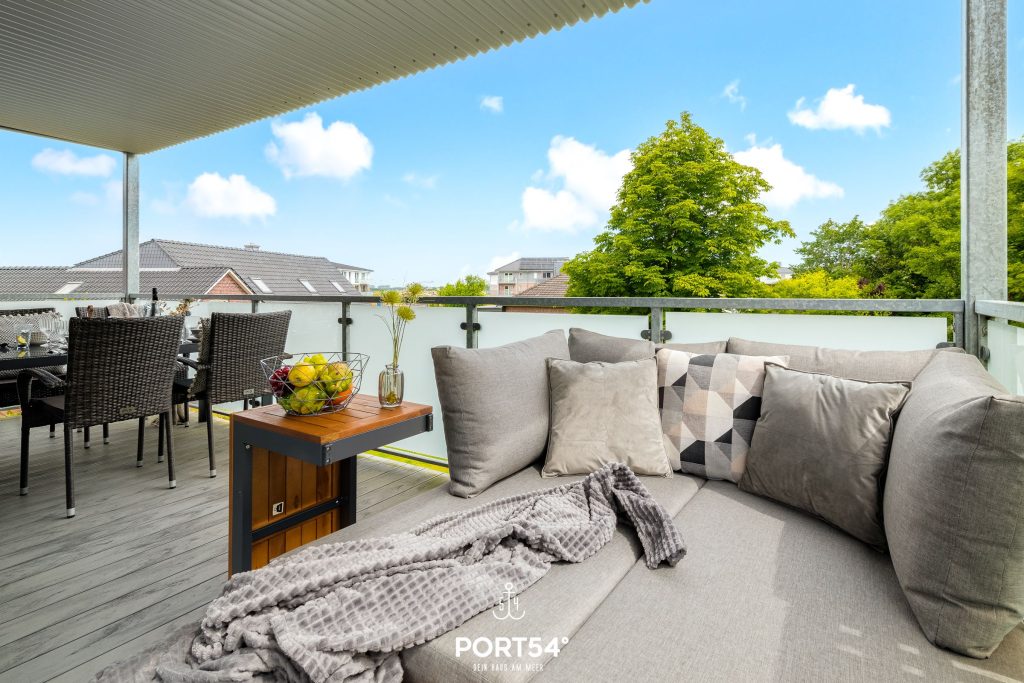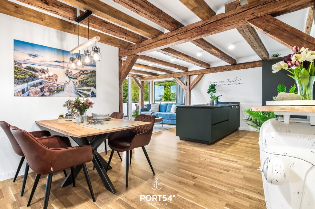Die Wohnung ist liebevoll eingerichtet und verfügt über eine offene Küche, die mit hochwertigen Geräten ausgestattet ist. Hier können Sie gemeinsam kochen und Ihre kulinarischen Köstlichkeiten zubereiten, während der Essbereich für gesellige Abende einlädt. Genießen Sie die Zeit auch auf dem großen Balkon wo Sie die frische Meeresluft und die ländliche Idylle genießen können.