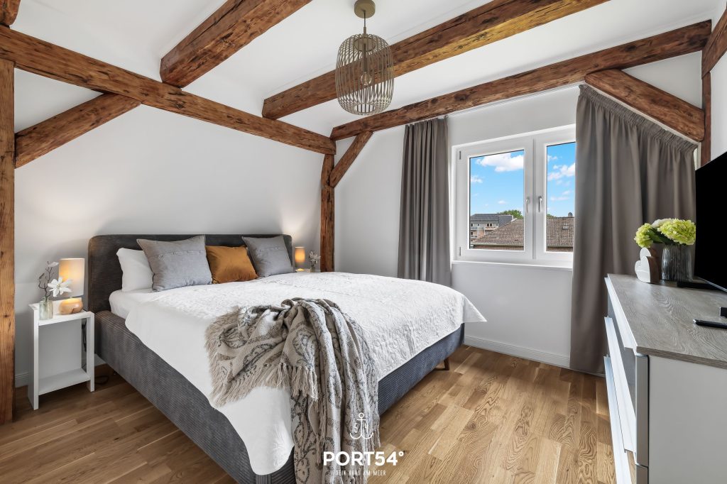 Die geschmackvoll gestalteten Schlafzimmer der Wohnung sind mit hochwertigen Betten (160x200m und 180x200m) ausgestattet und bieten Verdunklungsmöglichkeiten für eine erholsame Nachtruhe. Die Fenster sind mit Insektenschutzgittern ausgestattet. Ein komfortables Sofa mit Schlafmöglichkeit (160mx200m) bietet Platz für 2 weitere Gäste.