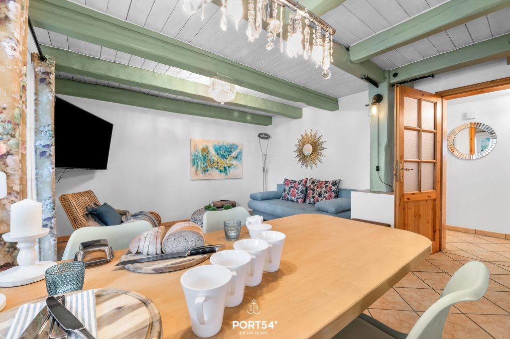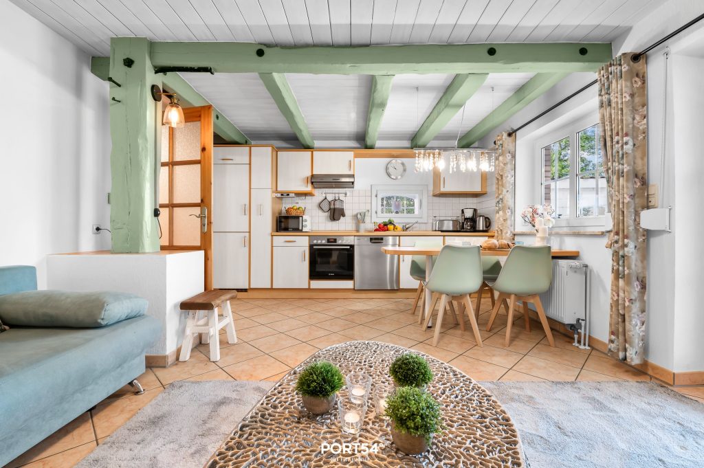 Über zwei Etagen erstreckt sich die Ferienwohnung über 64 m" und bietet somit Platz für bis zu 6 Personen.