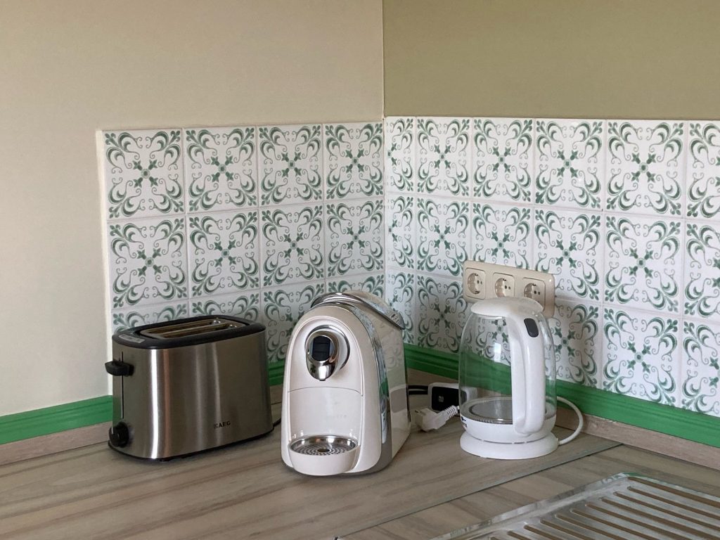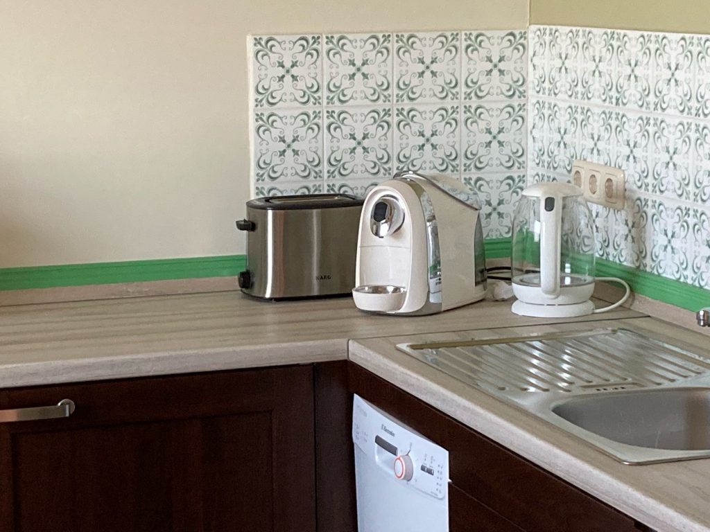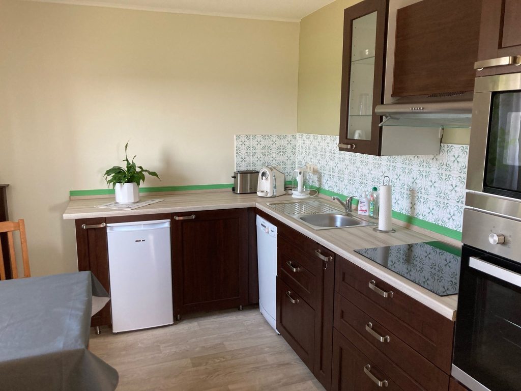 Die geschlossene Küche bietet alles, was du für die Selbstversorgung brauchst: Herd, Backofen, Geschirrspüler, Mikrowelle und Kühlschrank mit Gefrierfach. WLAN ist ebenfalls vorhanden, sodass du auch während deines Aufenthalts verbunden bleiben kannst.