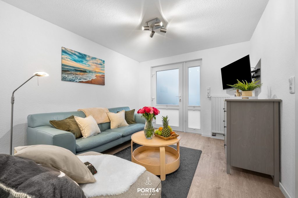 Der Wohnbereich ist mit Laminatboden ausgestattet und lädt mit einer gemütlichen Sofaecke sowie einem TV zu entspannten Abenden ein. Ein Blu-ray-Player sowie Spiele stehen ebenfalls zur Verfügung. Internet und WLAN ermöglichen jederzeitigen Online-Zugang. Sichtschutz an allen Fenstern gewährleistet Privatsphäre, während die Heizung ganzjährig für angenehmen Wohnkomfort sorgt.