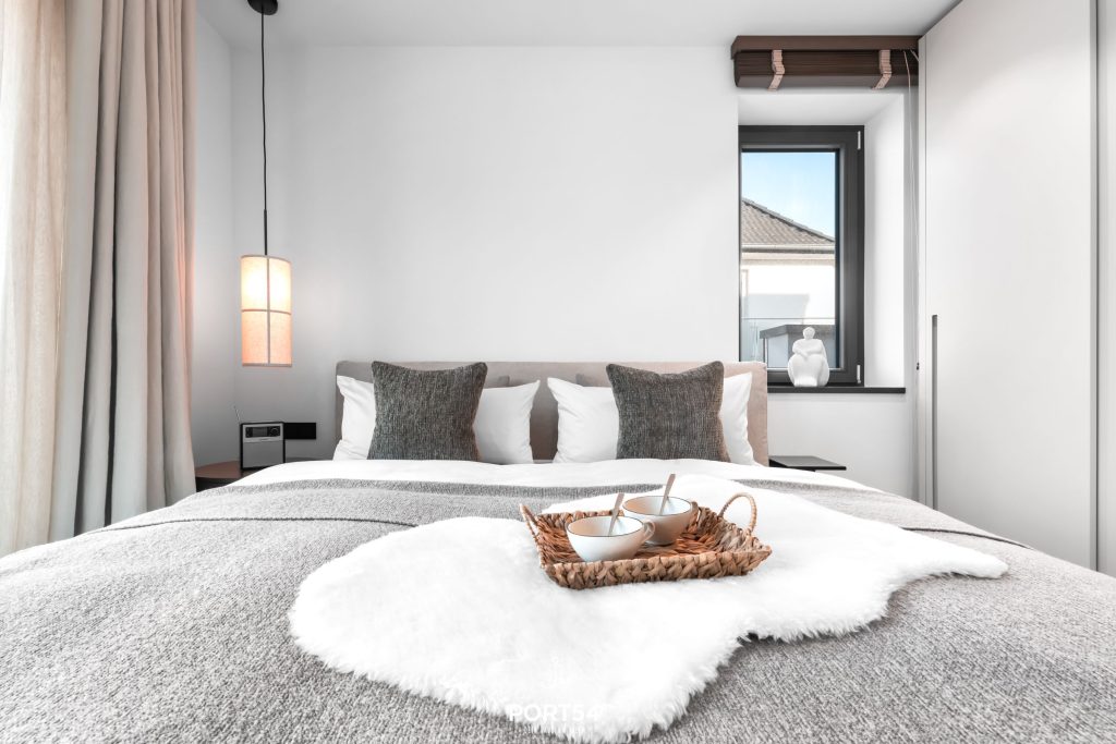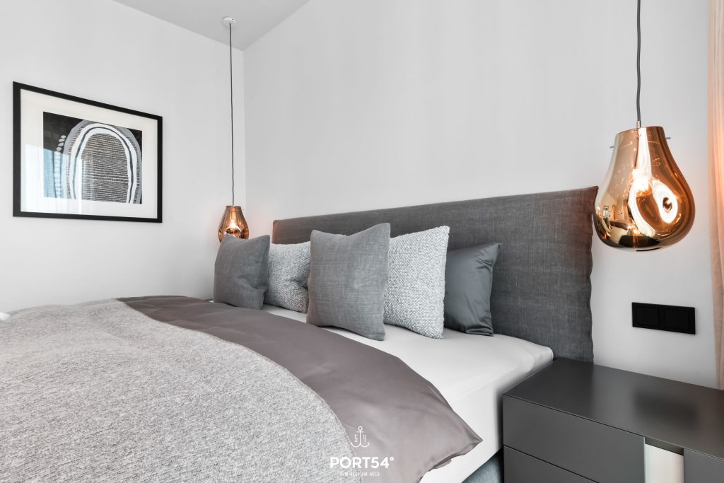 Viele Möbel der hochwertigen Einrichtung stammen aus dem Hause der Bornhold Manufaktur in Hamburg und wurden nach Maß angefertigt. Marken wie Schramm, ASCO, Jacaranda, Christine Knöcke und VIPP stehen für den Anspruch und die Qualität in dieser Ferienwohnung.