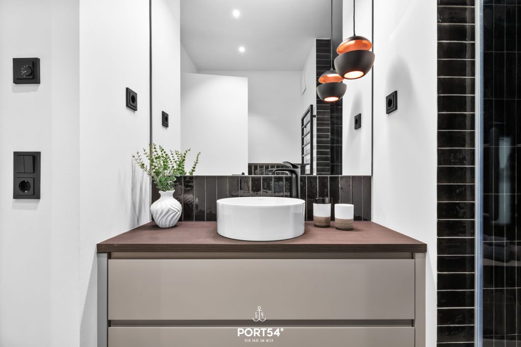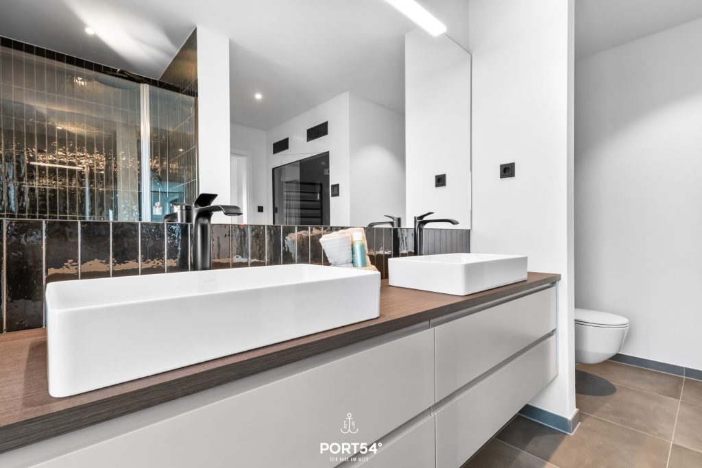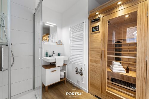 Ein weiteres Highlight ist die eigene Finnische Sauna, die dir ermöglicht, nach einem Tag voller Aktivitäten auf Sylt vollkommen zu entspannen. Die Badezimmer sind modern und elegant mit bodengleichen Duschen ausgestattet, sodass du dich erfrischen kannst, wann immer es dir beliebt. Eine Dusche verfügt ebenfalls über ein in die Dusche integriertes Infrarotpaneel.