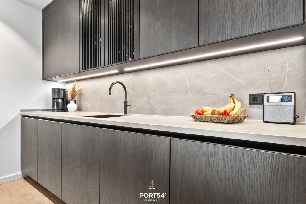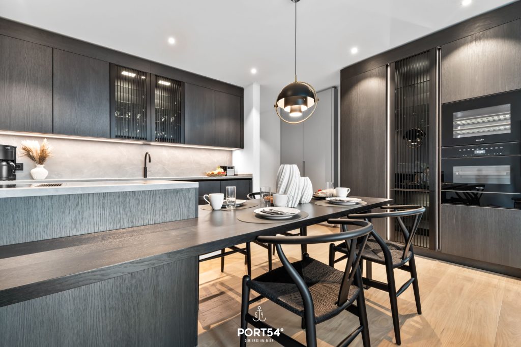 Die moderne Küche lässt keine Wünsche offen: Ausgestattet mit hochwertigen Geräten, wie einem Induktionsherd und einem Elektro-Backofen, lädt sie zum Ausprobieren neuer Rezepte ein. Hier findest du alles, was du für die Zubereitung deiner Lieblingsgerichte benötigst – vom Kühlschrank mit Gefrierfach bis zur Spülmaschine. Die Küche ist außerdem mit einem Quooker ausgestattet, damit lässt sich problemlos heißes Wasser sowie Sprudelwasser erzeugen. Genieße dein Frühstück oder ein romantisches Abendessen auf dem Balkon mit Blick auf die Nordsee, der ebenfalls Gartenmöbel für entspannte Stunden im Freien bereithält.