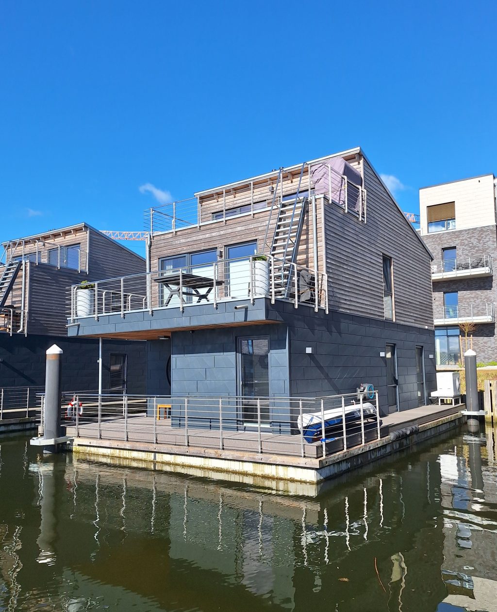 Das „Wasserhaus im Pionierhafen“ in Schleswig liegt direkt am Wasser und bietet Dir auf zwei Etagen Platz für bis zu 5 Personen. Die besondere Lage prägt Deinen Aufenthalt vom ersten Moment an. Der Blick über die Schlei, das wechselnde Licht und die Nähe zur Natur schaffen eine ruhige, entspannte Atmosphäre.
